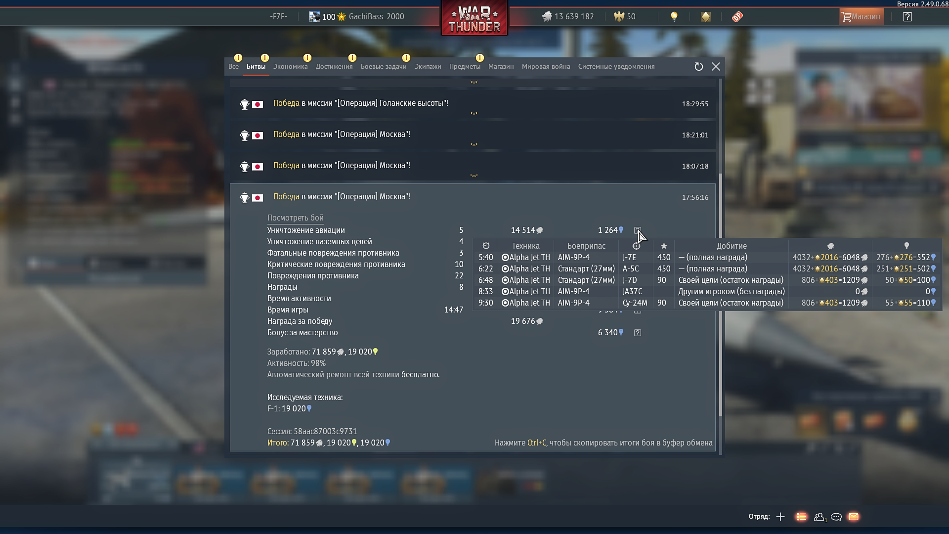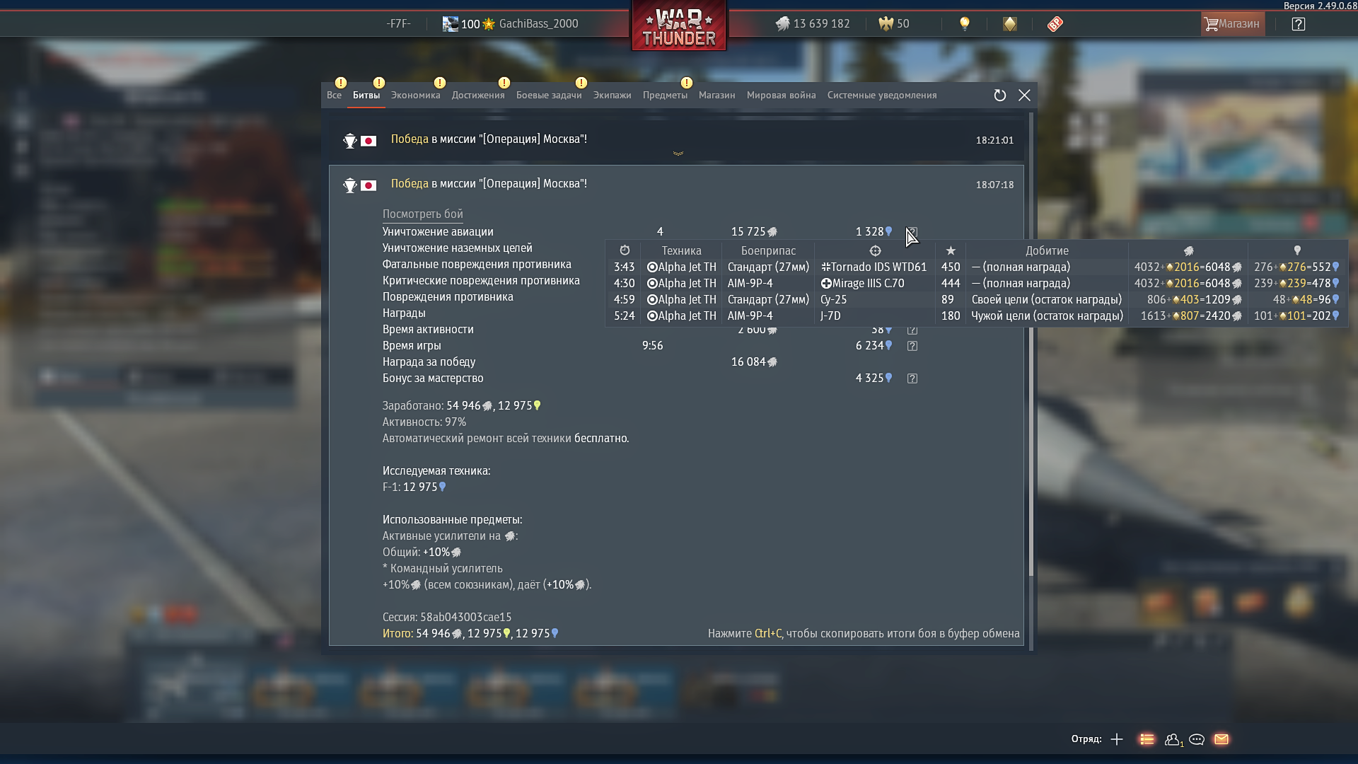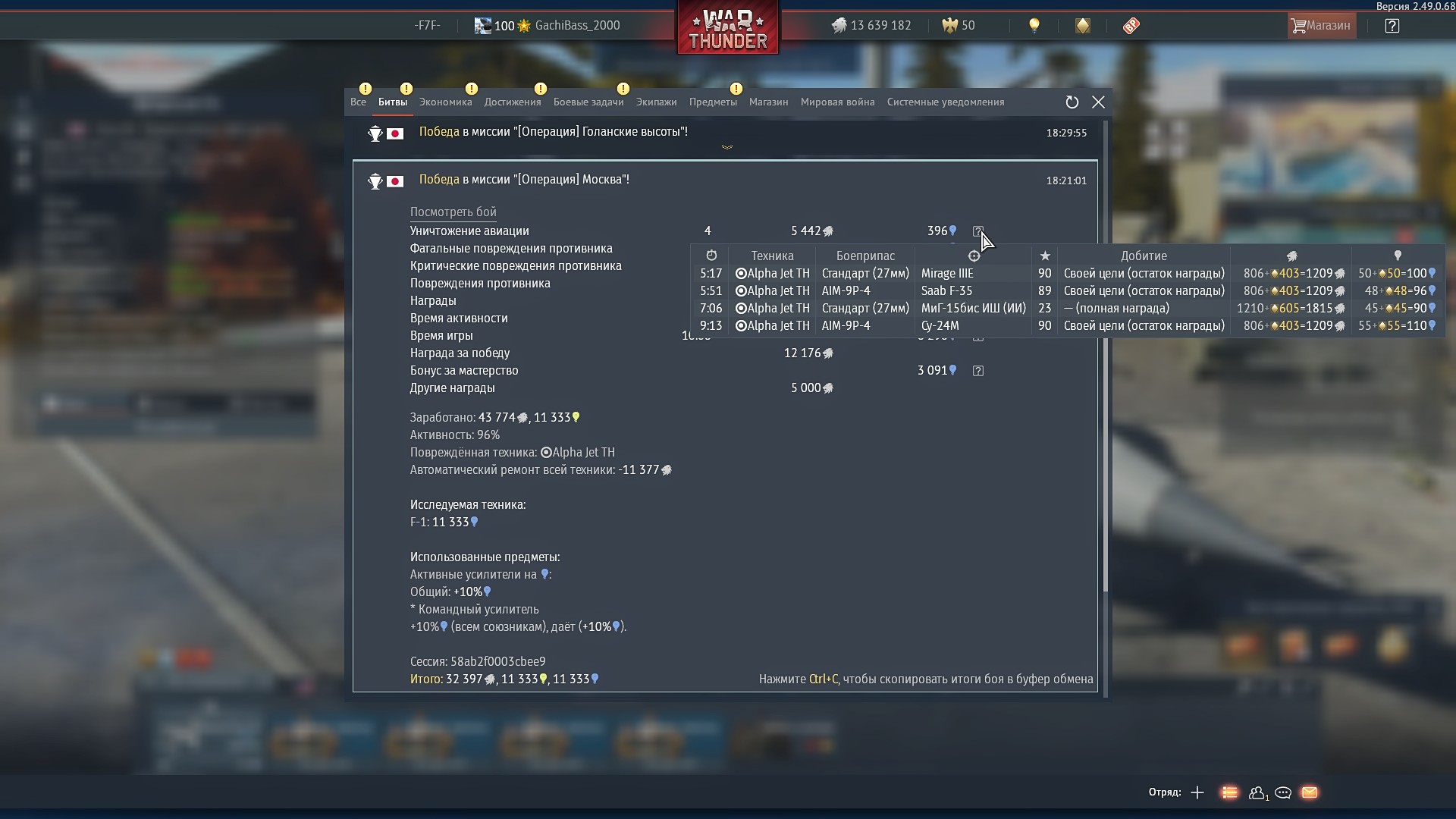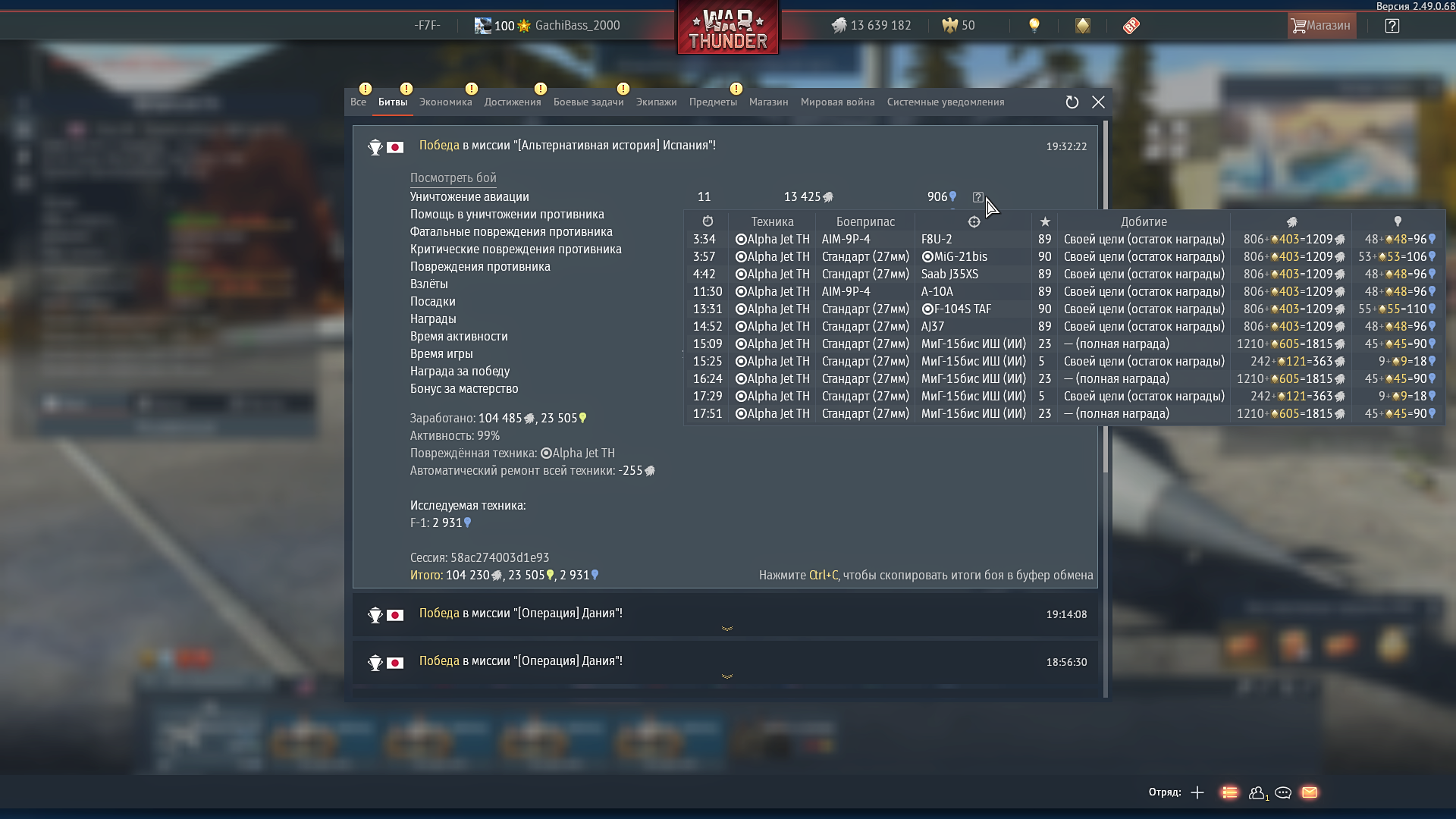В целом, ничего особенного. Абсолютно любой самолёт с 4 штуками всеракурсов может так наваливать. Лишний раз убедился в бессмысленности его качать. В смысле, покупать, он давно уже открылся. Хватит для японской 9.0-9.3 штурмовки базового тайского варианта, куплю по скидкам.