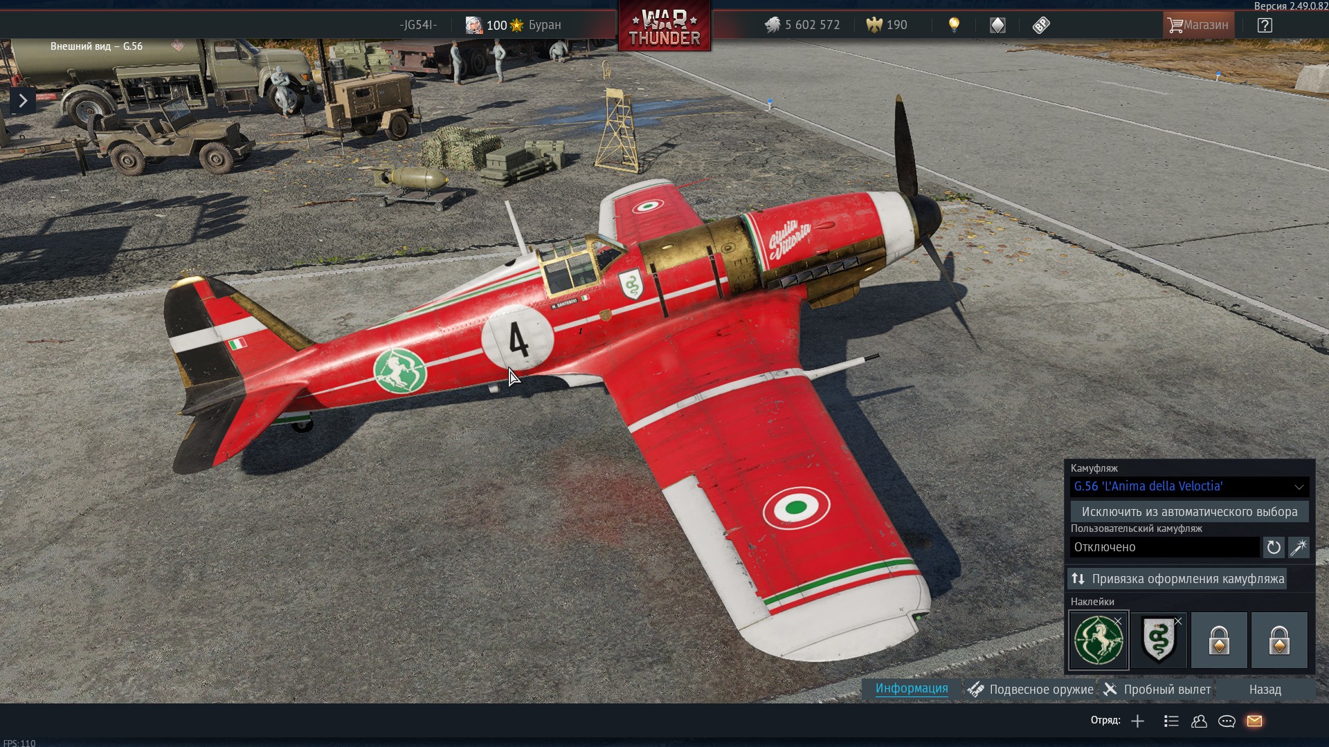 У меня пока по расчетам так - с винтом и мотором от Г-6 Re.2005 летит 530-535 км/ч у земли,с винтомоторной группой от G.56 - 570,хотя разница в 15 лс в пользу мессера.Винт решает.