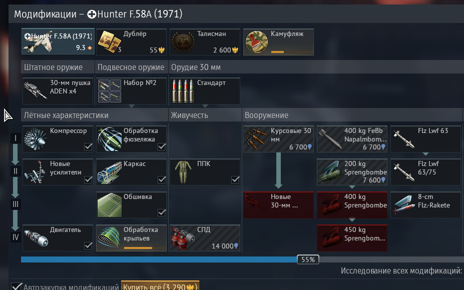 мда, слишком много опыта на модули надо для такого ущербного самолёта