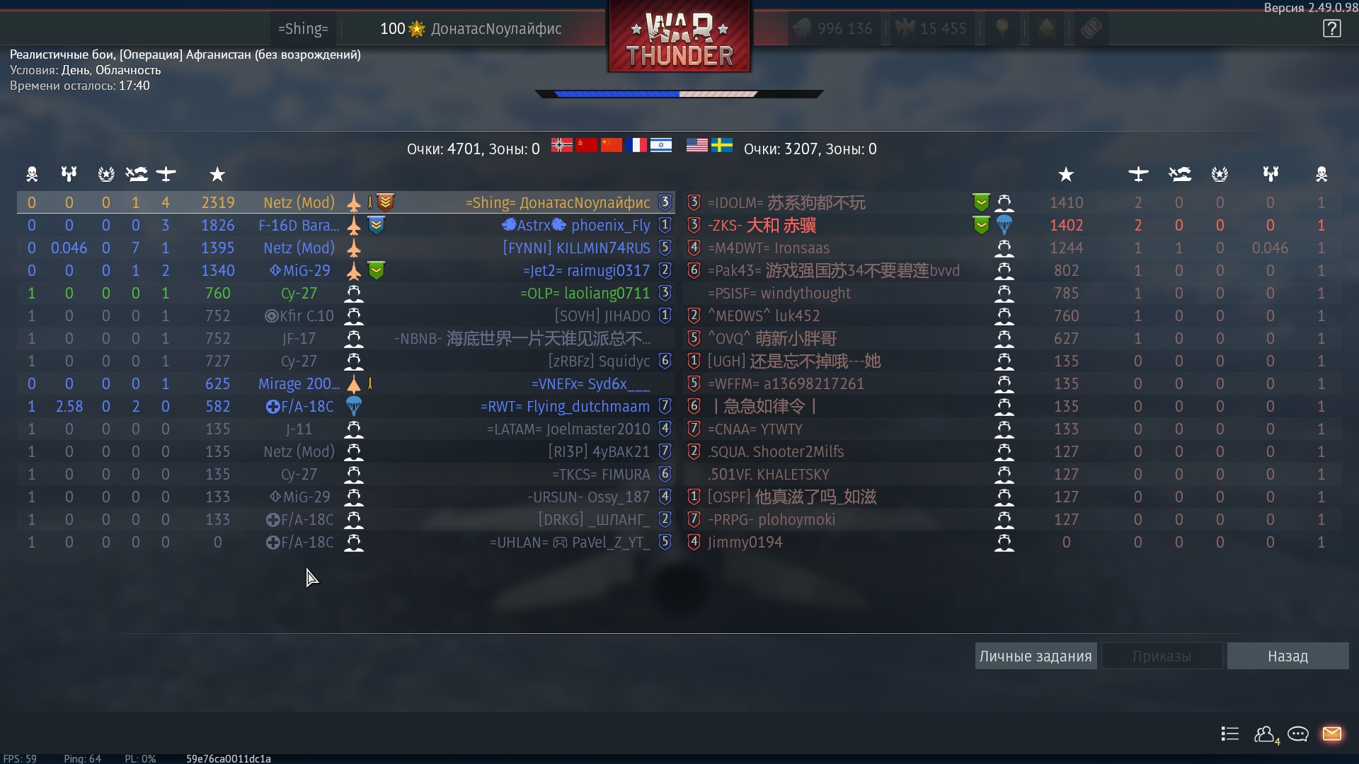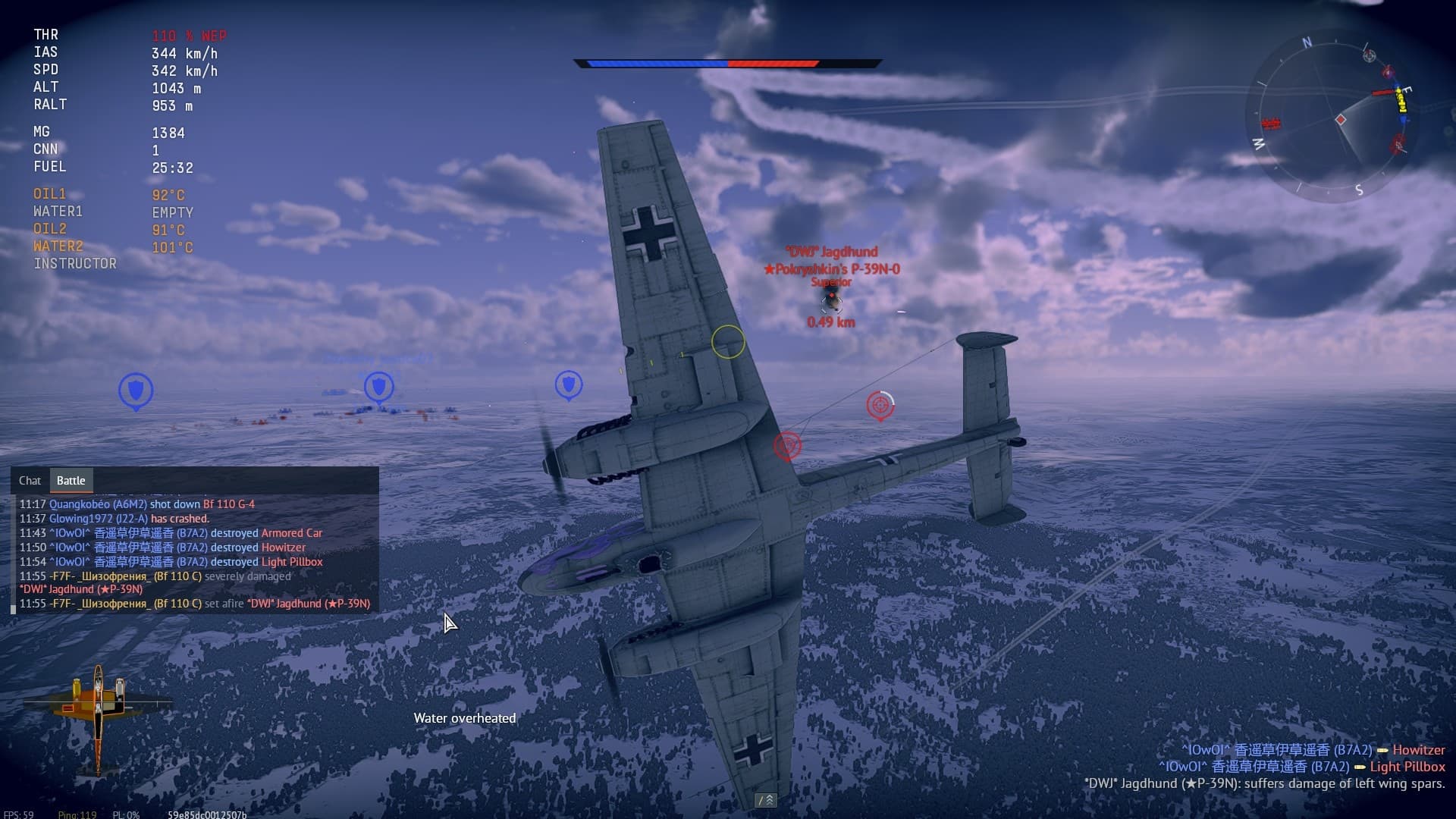 Пострелял мимо всех противников, ибо вместо силуэтов самолетов или точек вижу только ники в облаках, потом меня в этом же облаке без маркера шотнули