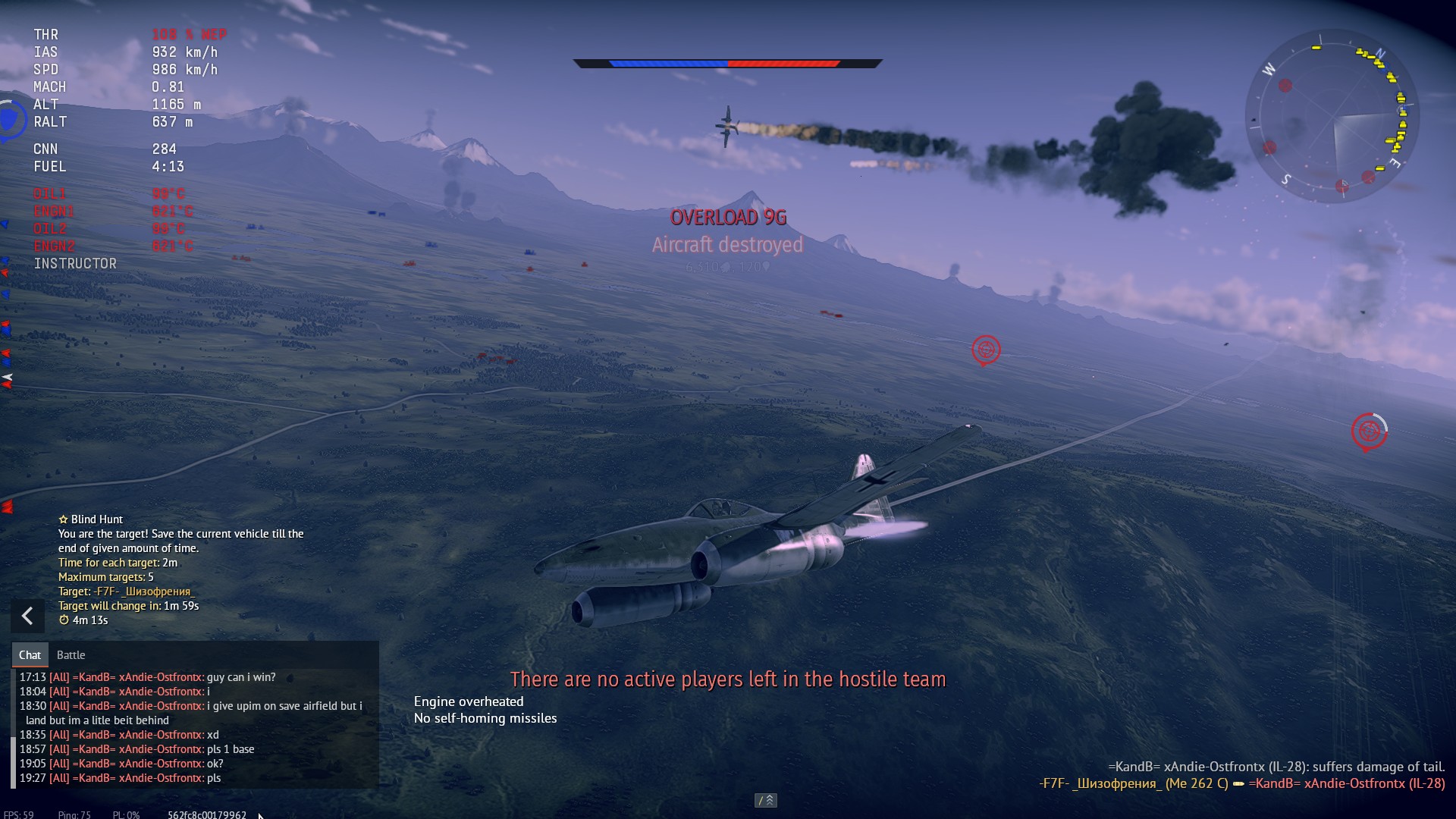 К тому же на Иле-28 не будь он анскилльным ботом он мог и сам спокойно меня сбить, а не просить базу и ПОБЕДУ нахаляву