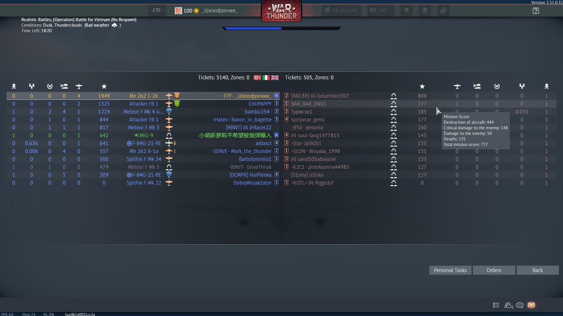 Полные штаны скиллозависимых интересных джетов, до этого бои на -1 и -2 были с похожими сценариями