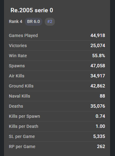 Недоработка! Без данных по 2005 твой разбор никак не опровергает моё утверждение, что на 2005 среднему игроку проще попадать и соответственно сбивать за счёт большого боекомплекта!