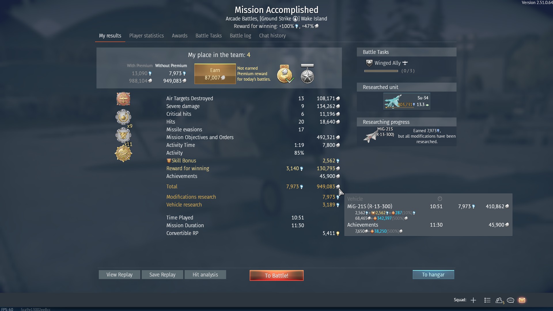 я оказался прав - он очень хорошая машинка - заслуживает повышения БР.Но разработчик годами не трогает машины с сотнями тысяч боев,на которых средний игрок показывает 200% эффективность.