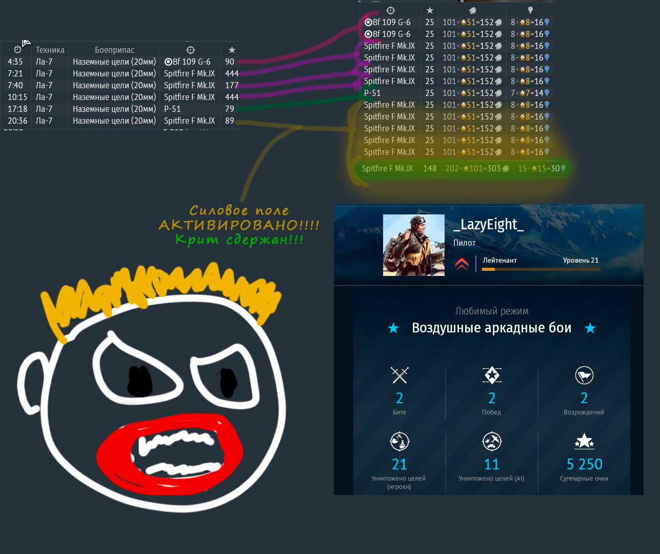 Попал сегодня к синим терминаторам из боев Шиза)Пару самолетов заагрились именно на меня,хотя я был ниже.Но синий рой всех их порвал.Ташки которые заклимбили наверно были в шоке,их тоже запинали толпой и со мной не поделились)