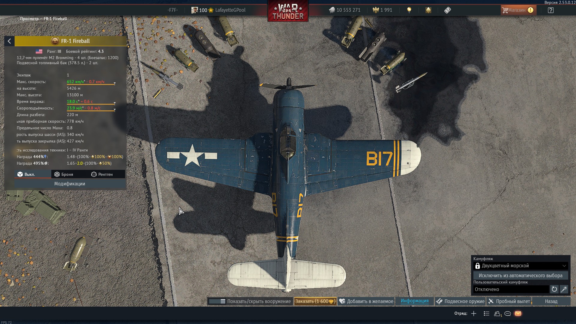 ниже 3 км уничтожает всё живое. специально дуэлился против них.если на Г.55 я могу крутануть як-3,бирку или даже спит,то вот это пока есть тяга не крутануть,не пропустить. слишком хороший ролл и рн. плюс к этому закрылки которые БЕЗ КОСТЫЛЕЙ. Получился метовый самолет для летания по нулям. Но вот на высоте(4 км и выше)… магия пропадает