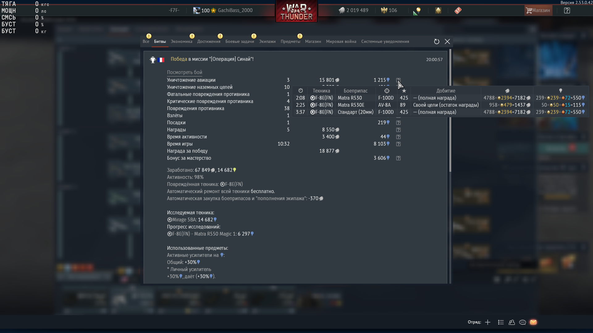ХРюшка нынче потеряла актуальность из-за потери воздушного респа. Чи-ну брать ток если хочешь японские тунчесы качать. Как-будто талик больше смысла имеет брать. Ну и да, на F-84F маловероятно что выпадет, ибо все Тандерстрики на 6 ранге (кроме амеровского)