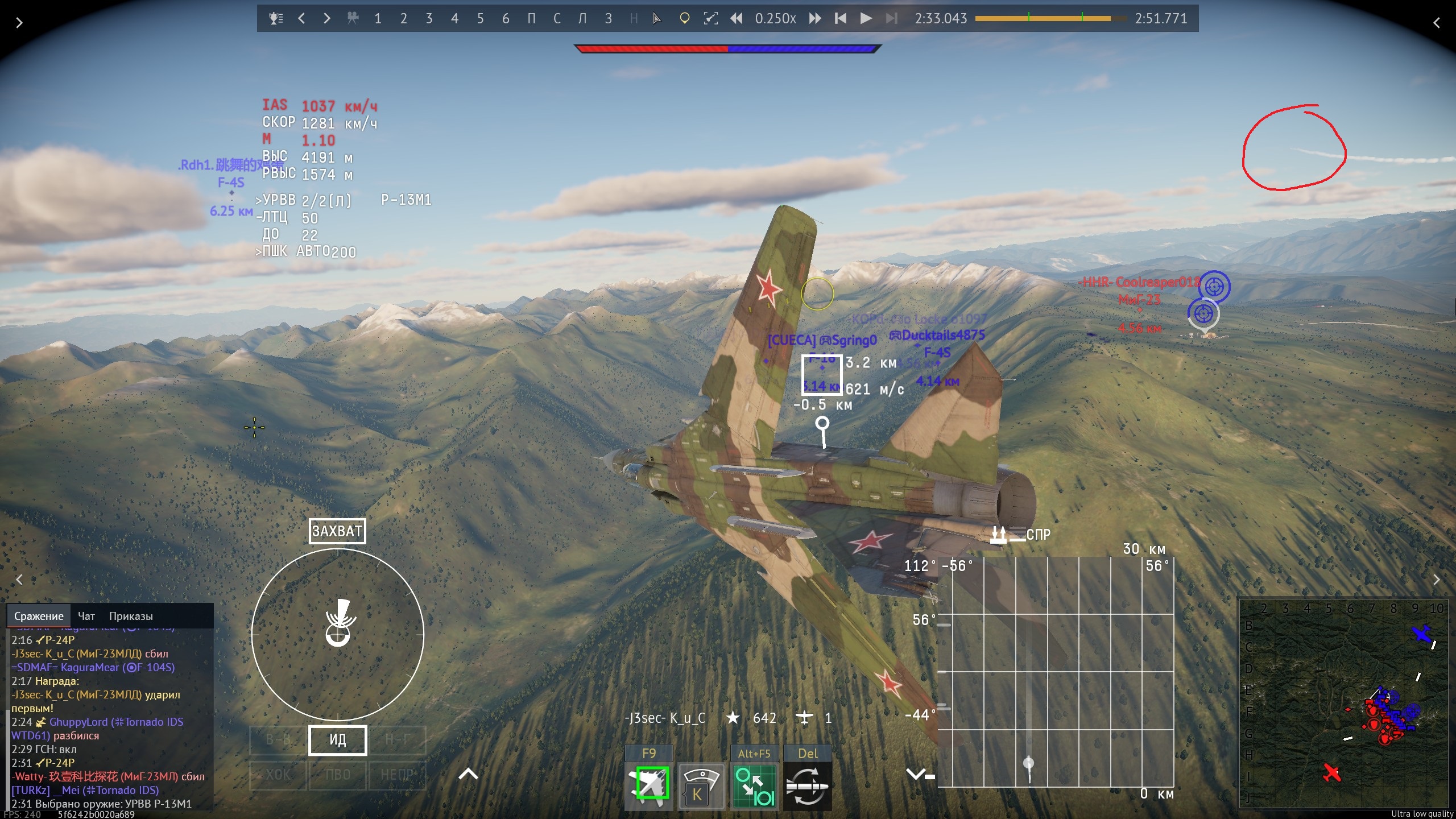 Шестнарь прёт в лоб как паровоз, Р-24 улетает на Плутон. Какие тут лепестки радара вступили в дело я ума не приложу.