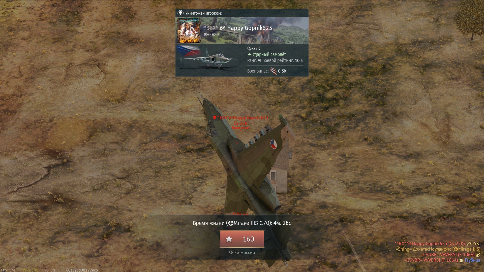 Остался 1 в 5 на F-5E на СБшной Испании. Ну, думаю, пора сушить вёсла. Один разбился, трое умерли об ИТОшки в попытке меня завулчить (я честно перезаряжался), последнего руками добил.