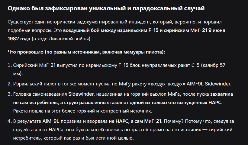 Та почему? Огромный горячий движок ракеты вполне себе может перелочить вражескую ИК-ракету.