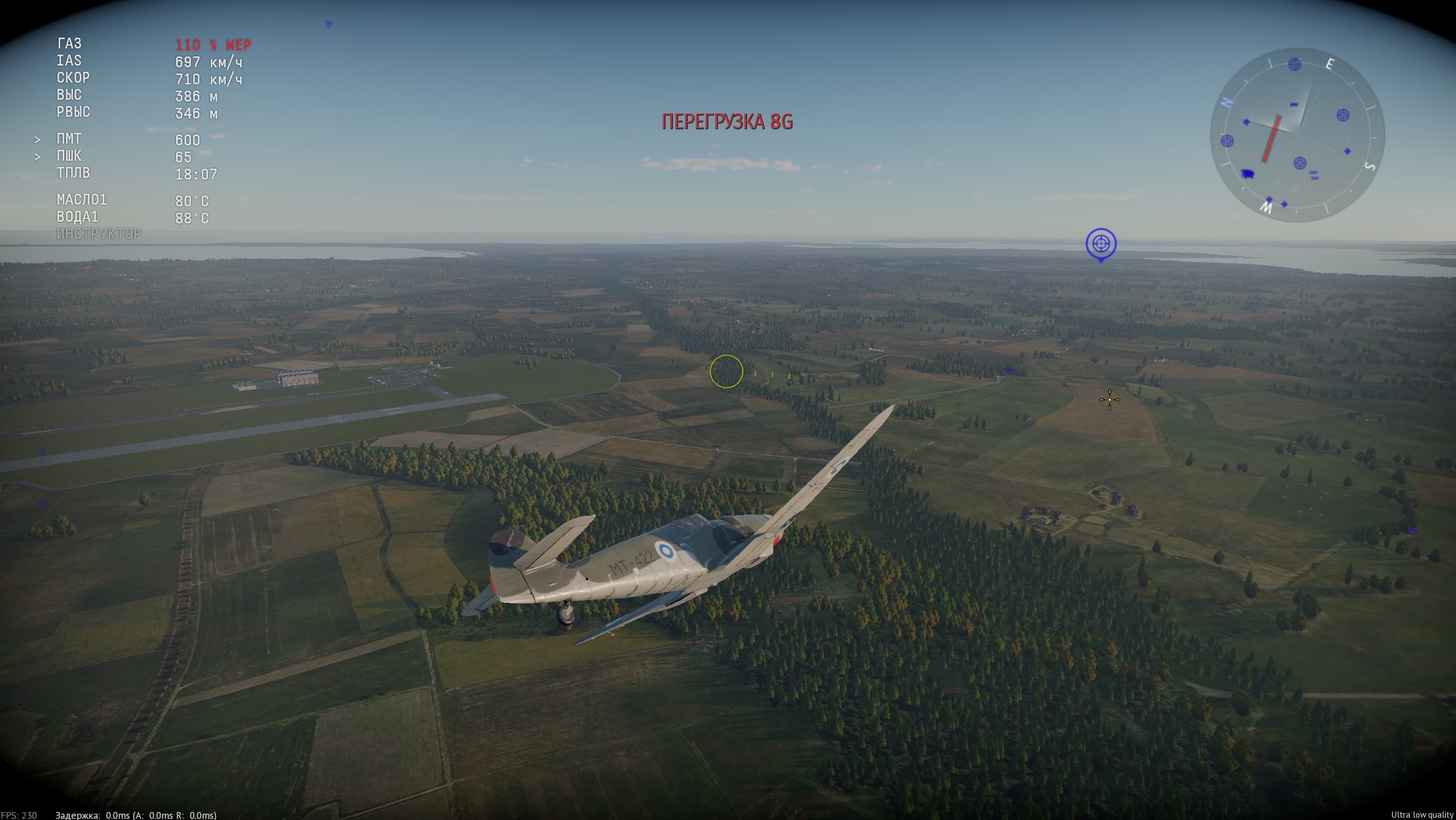 И тоже самое с креном. Но задача сбить еле как кренящийся тайфун имея запас высоты 2 километра (а не сдохнуть наитупейшим образом влетев с худшего угла и подставив 6) всё ещё непосильная для типичного мессовода.