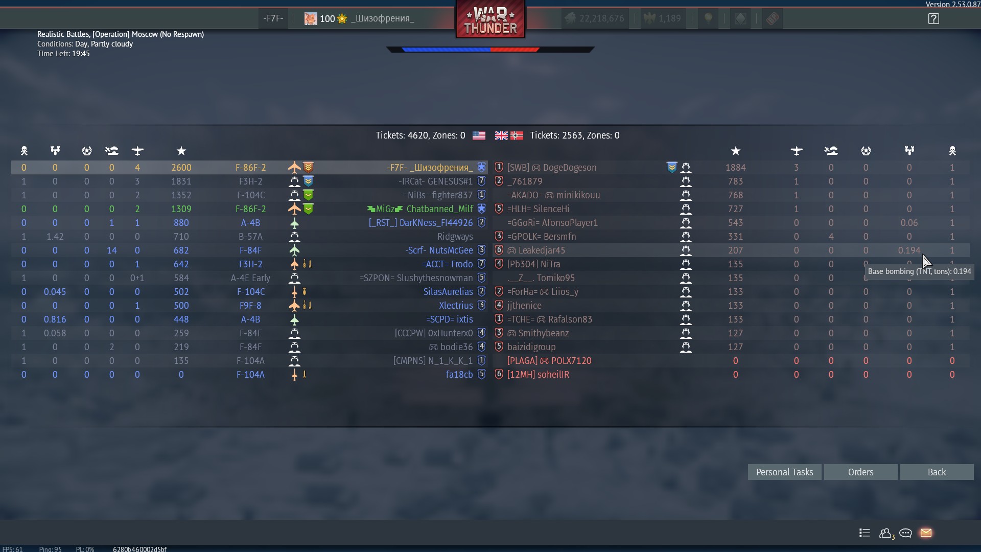 Джеты абсолютное дно, у меня на глазах два МиГ-15бис по прямой пытались без уклонений убежать от Старфайтера. Красный МиГ-19С отбомбился по базе, пошел со мной виражить на тормозе без форсажа и убился, несколько красных на Хантерах бегали половину боя, а потом назло разбились. Зачем тут летать вообще, тут игроки хуже, чем на бипланах.