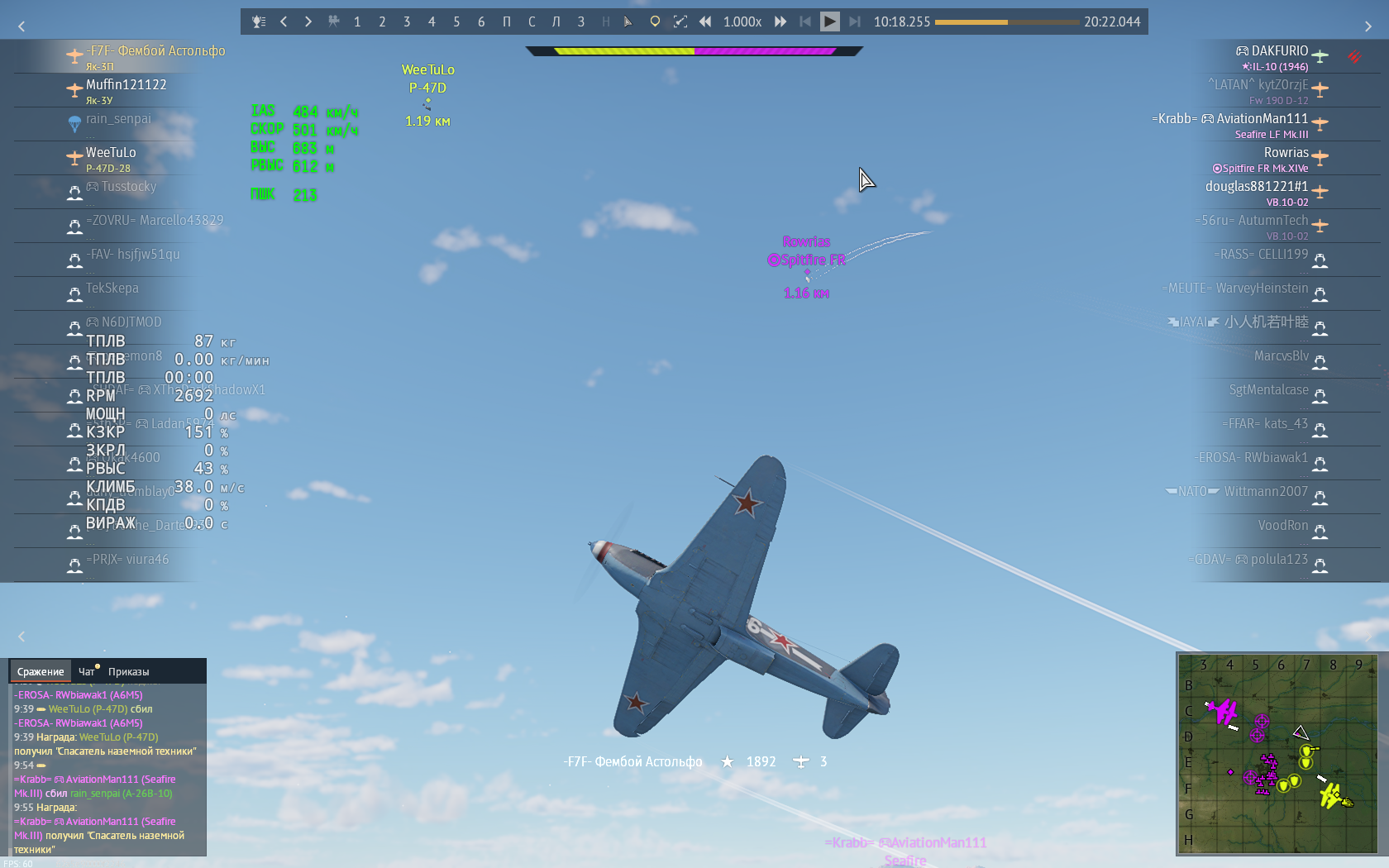 За кадром я еще убью пару вб10 что не составит особых проблем, а самое крутое последний фраг который я попросил дать мне, и мне его отдали, так еще я сбил этот ил-10 когда у меня закончилось все топливо, а чел на 3у летел и охранял меня, чтобы помочь вдруг что.