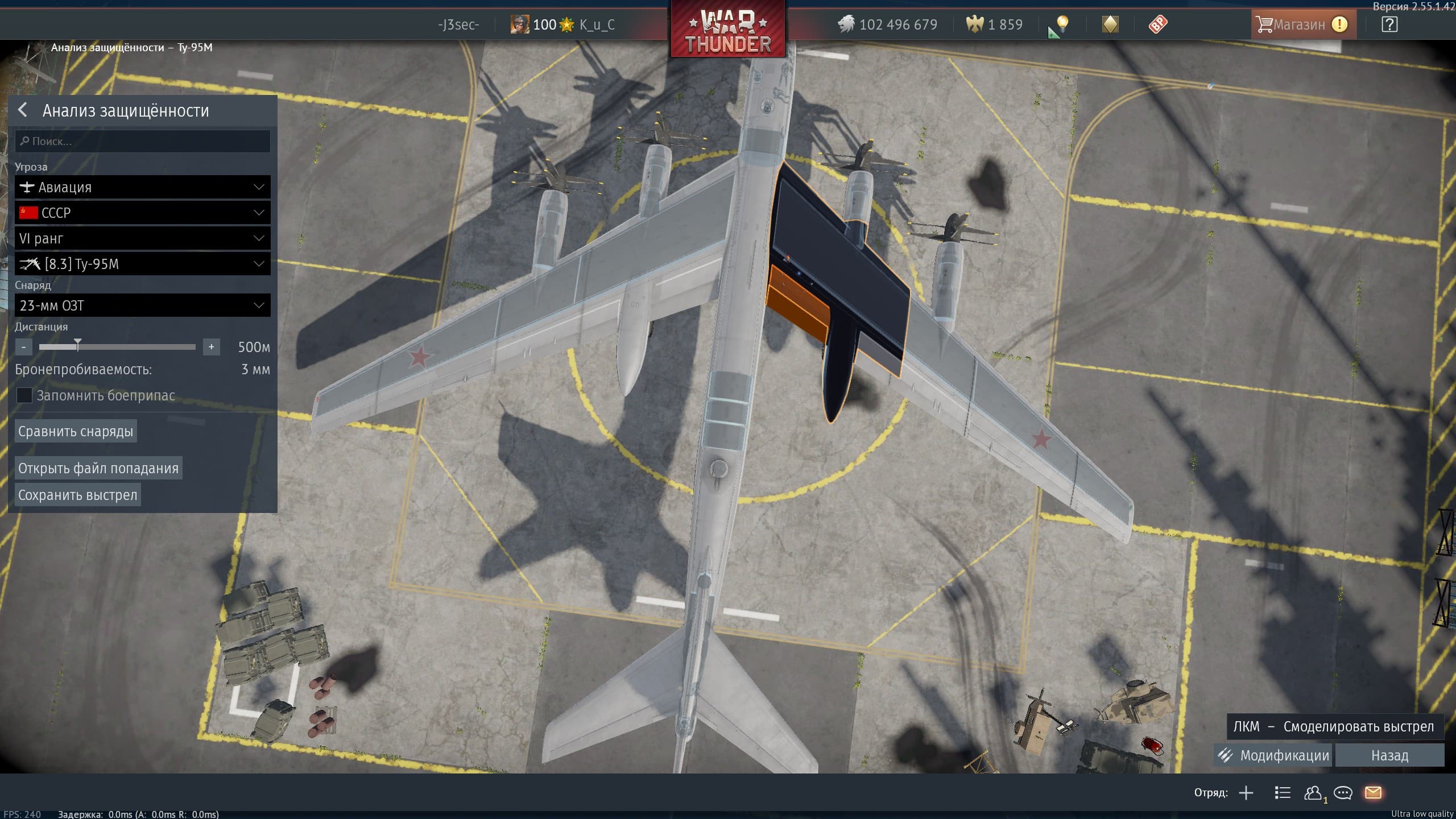 Нужно увеличивать количество секций, по которым проходит дамаг. Опять же, как видно из первого моего скриншота, чел окрасил половину фюзеляжа B-52 золотым дождём через один зажим с 12,7. Если бы он целился точнее, то снёс бы хвост в чёрный цвет с последующим его отрывом. Потому что корпус и хвост состоят буквально из нескольких огромных секций с ХП как у аналогичных секций маленького истребителя. У бобров этих секций должно быть в разы больше.
