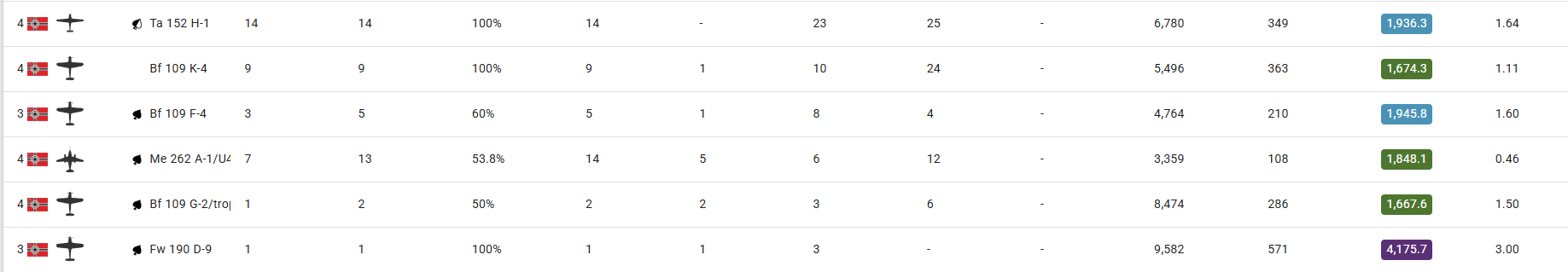 Да, именно поэтому на Як-1Б четверть всех боев сыграно. И самый высокий КБ после 239. Чисто по совпадению. Будь в ветке трофейные Як-1, Як-3, Як-9У, Як-3П, Як-3У, Ла-7 - мы бы немцев в стате вообще бы всей маршруткой искали.
