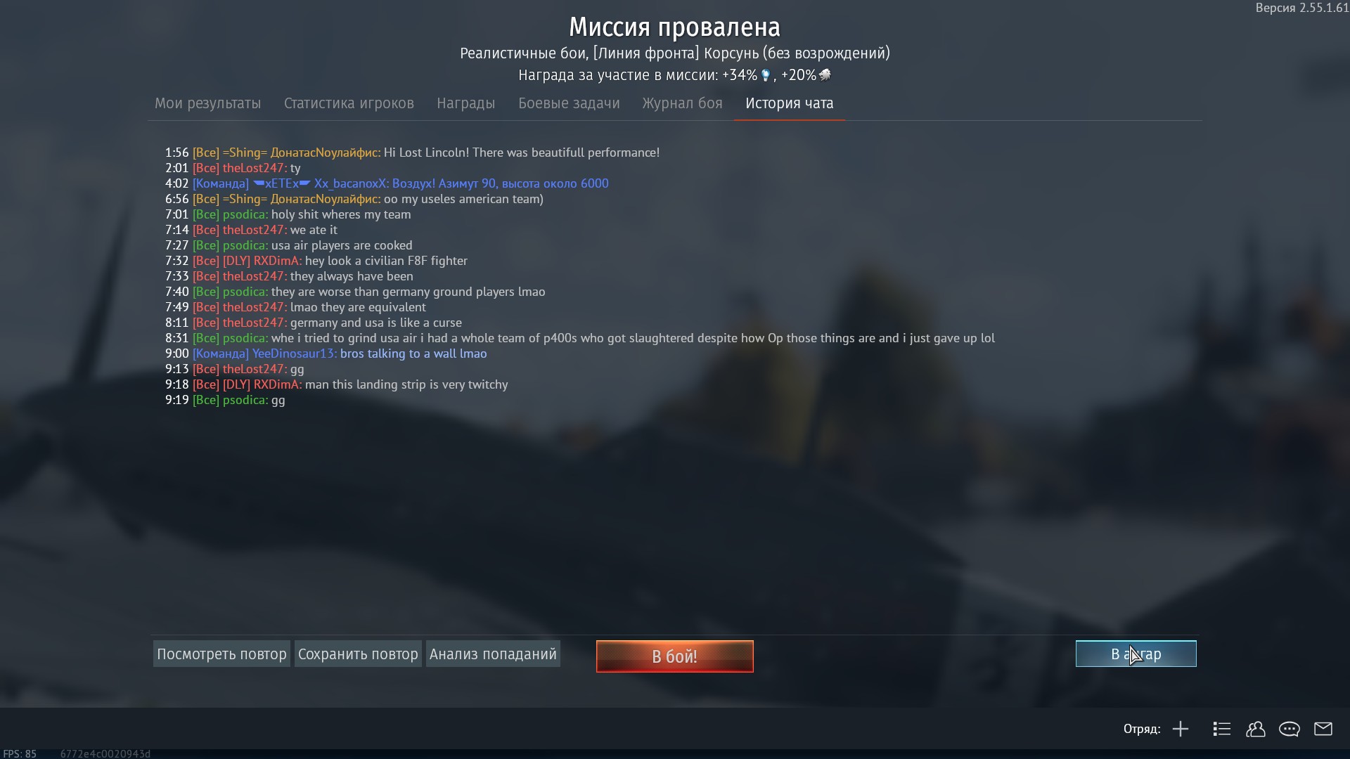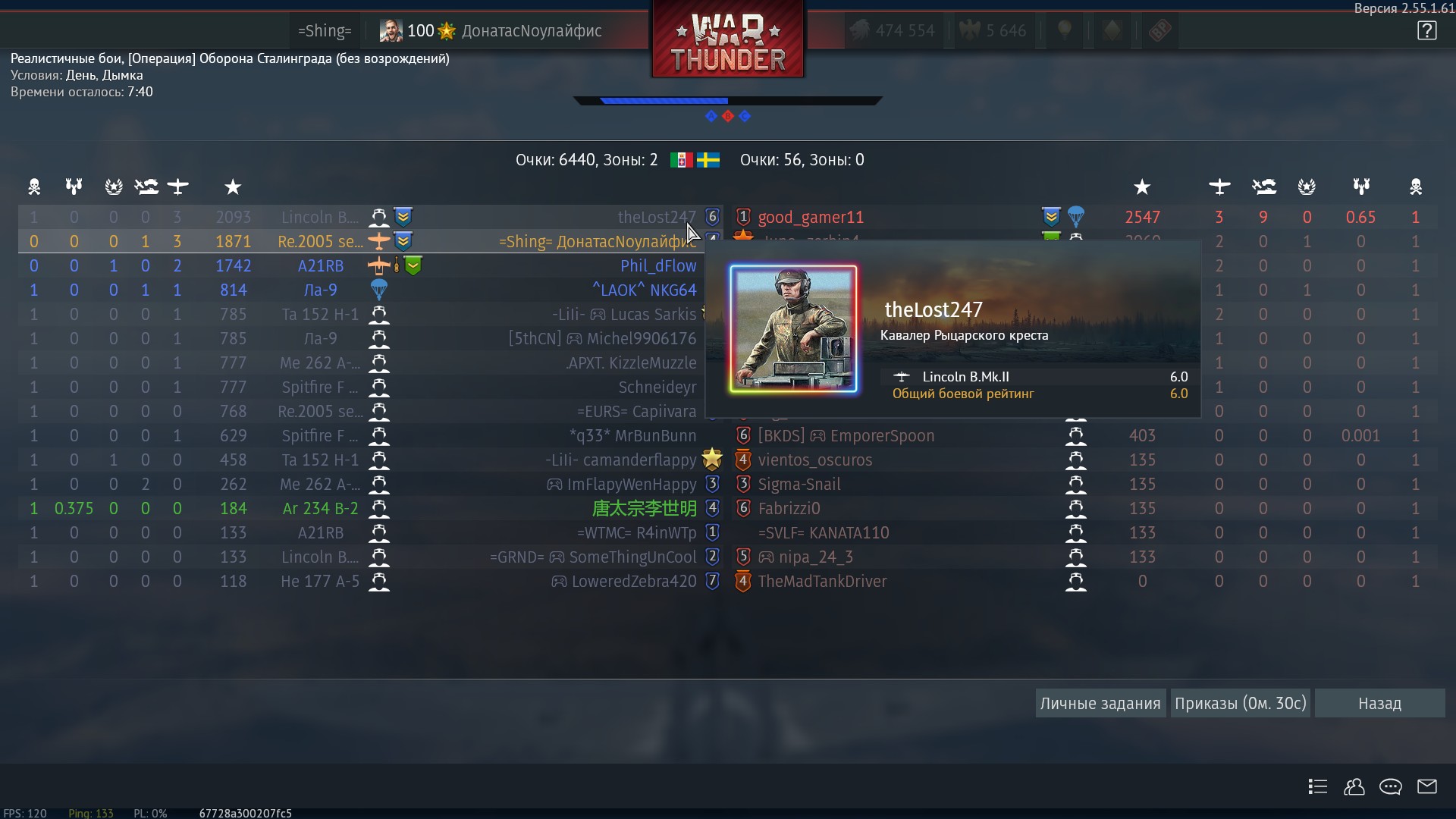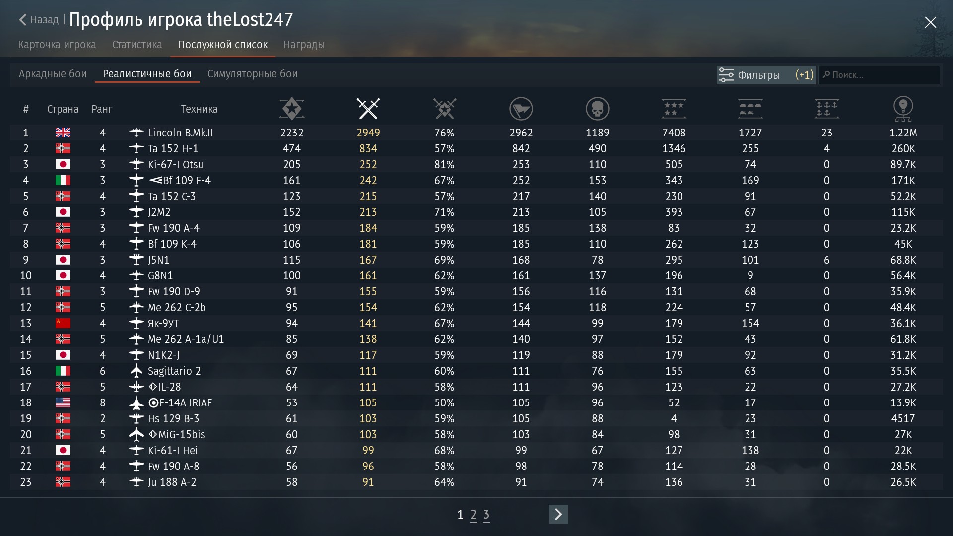 (А так у него В СРЕДНЕМ почти 3 за почти 3000(!!!) вылетов на Линкольне)