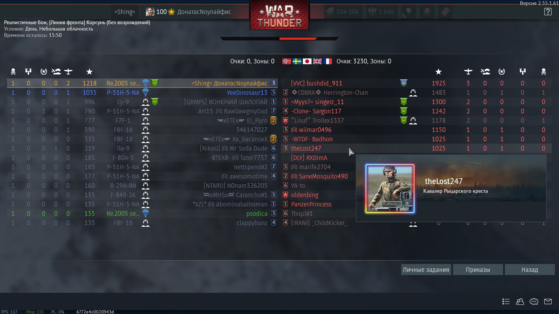сбил по очереди атаковавших меня Суперкорсара и Супермустанга, потом напоследок разменялся с Ф-84