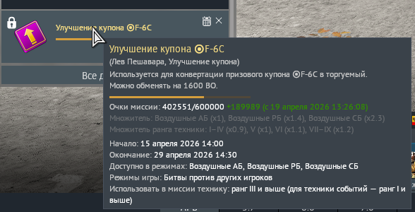 Не занимает много времени, позволяет лутать кучу бесполезной техники и купонов, но ограничивает в списке самолётов только самыми простыми и премиумными