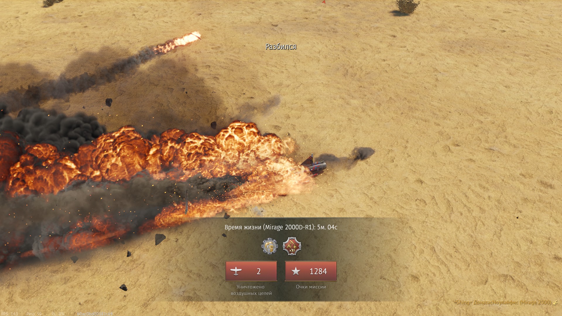 Пятый бой - полбоя летел в офлайне, потому что приехала доставка еды, вернулся - сбил 2, потерял управление (ППК не прокачан), разбился без повреждений от врага