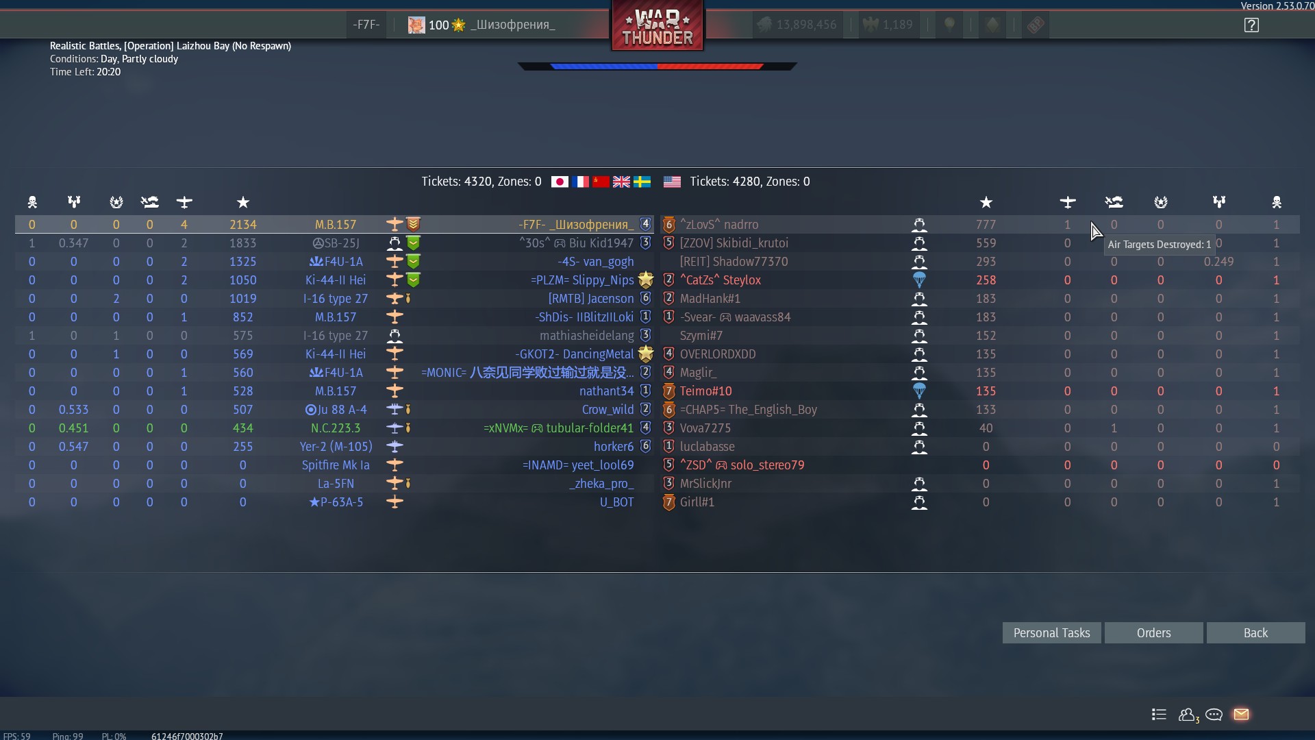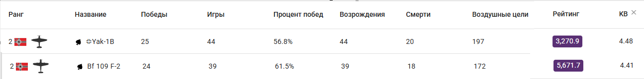 Мне еще нравится, как на слабом Яке за 4.5 кб дают нищие 3000 рейтинга эффективности. А на Ф-2 за подобный уровень свершений - почти 6000. Одного уровня самолеты - сразу видно.