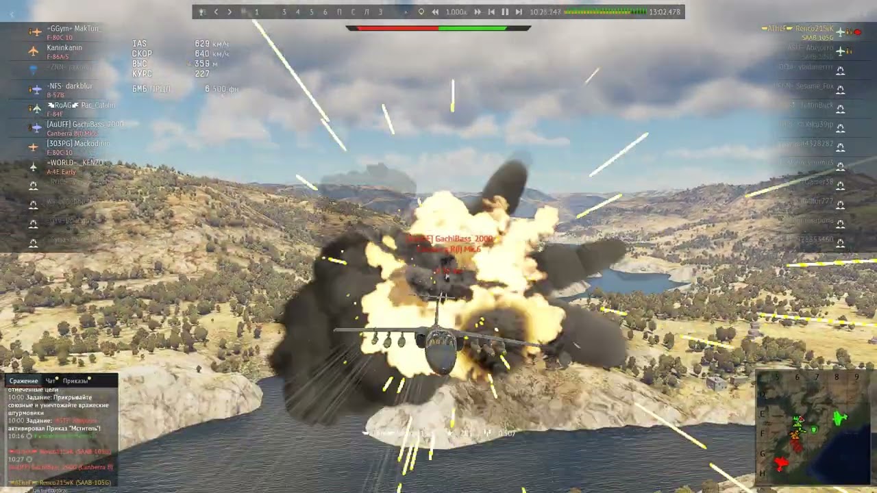 Очень реалистичный дамаг по СААБу кстати, этим спец.эффектам даже сам Майкл Бэй позавидует. Ну и конечно же, эти спец.эффекты и два попадания по 1000 фн бимбам не влияют на ЛТХ самолёта и он продолжает летать, понимать надо. Зато как презентовали эту механику при выходе Сынов Аттил