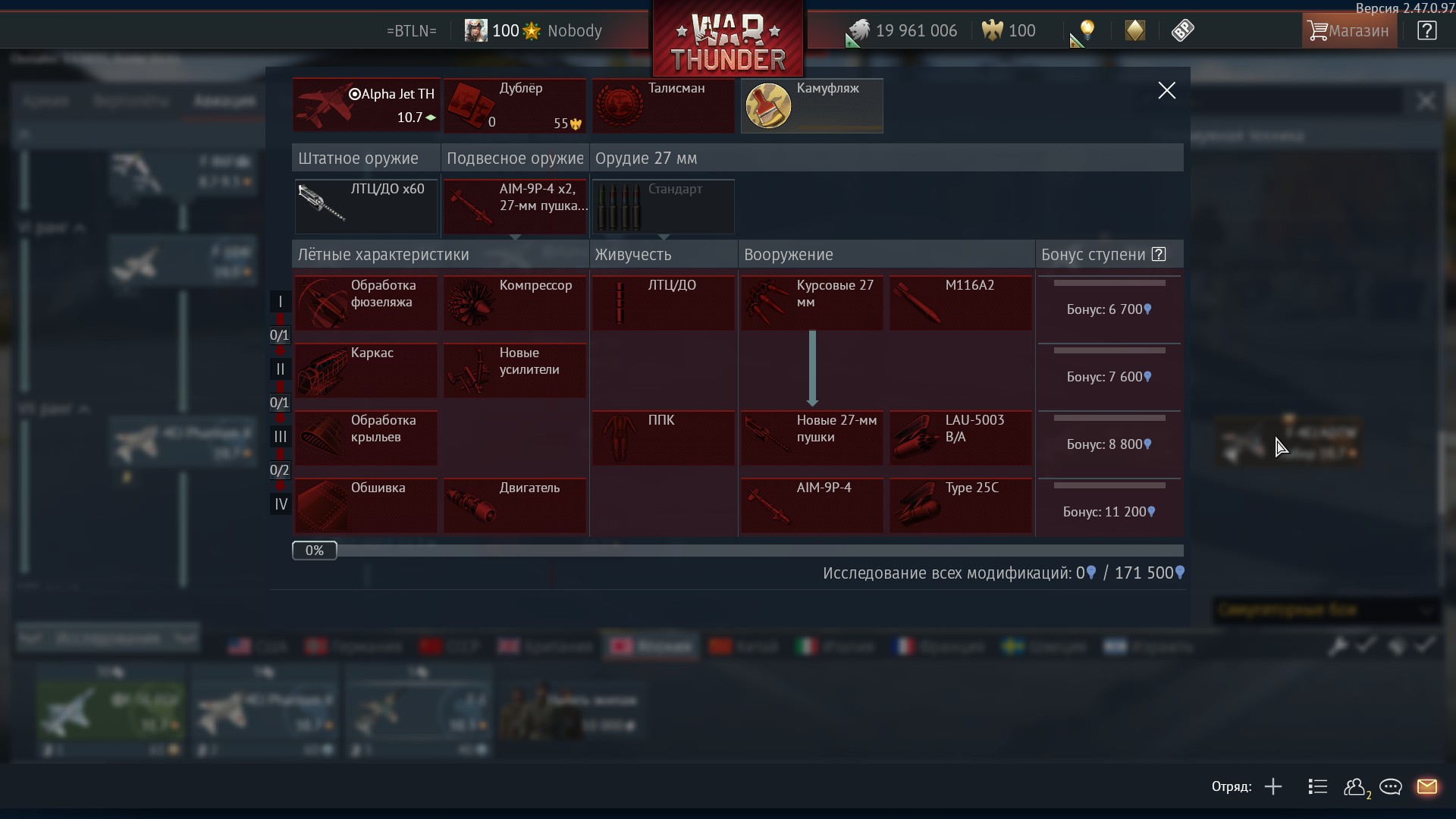 Стоимость всех самолетов на ранге В СУММЕ должна быть одинаковой у всех наций, без учета новых машин. Далее стоимость прокачки корректируется с учетом новых