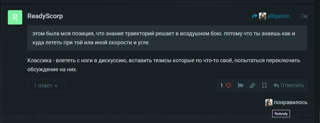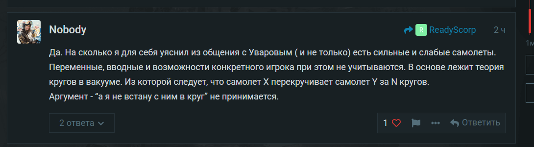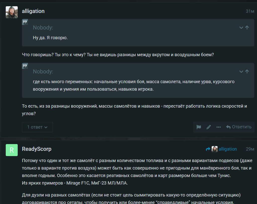 В этом была моя позиция, что знание траекторий решает в воздушном бою. потому что ты знаешь как и куда лететь при той или иной скорости и угле