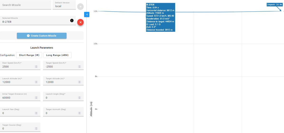 Поставь цель также на высоту 10км, и Р-27ЭР сможет разогнаться до такой скорости.