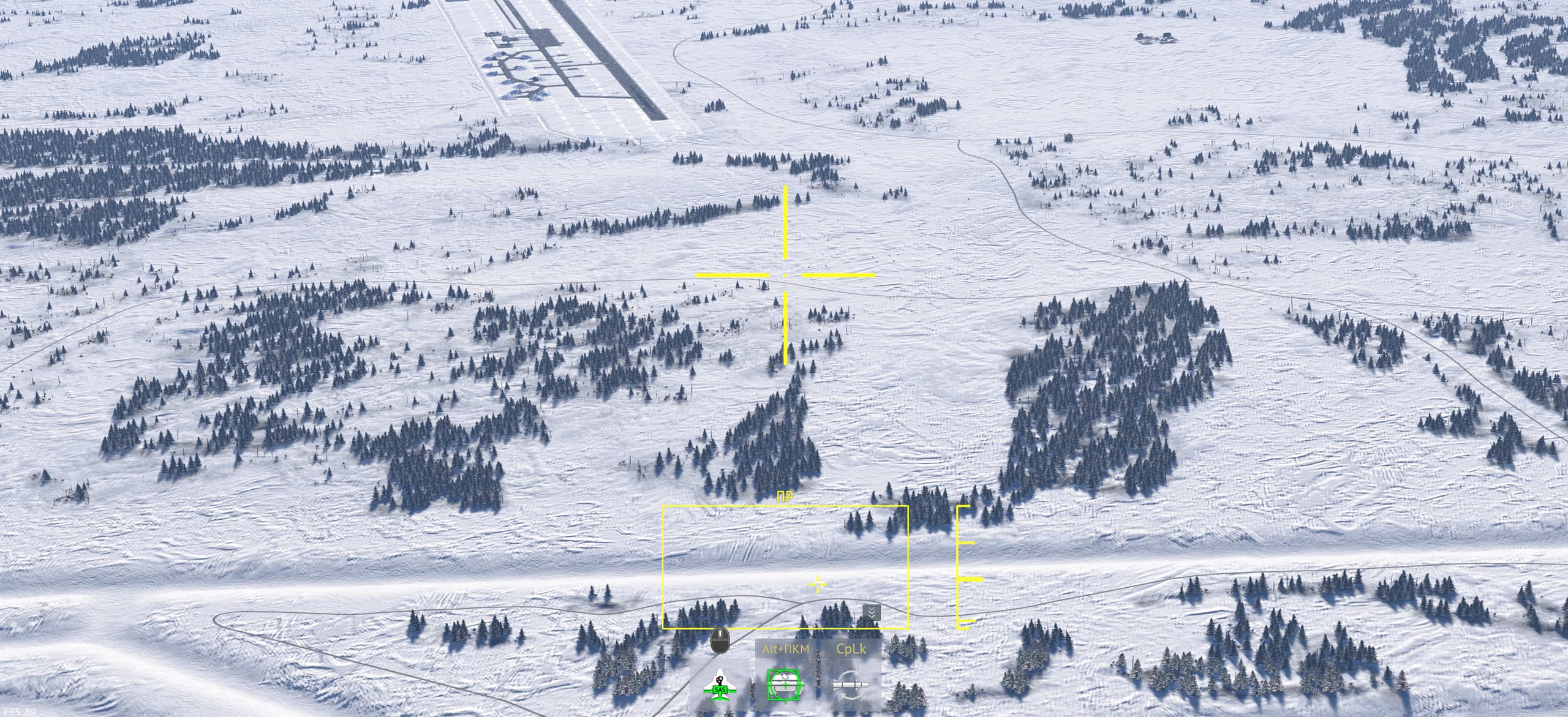 Особенно на мышеджое. Потому как ты заходишь на цель одним курсом, а после перехода в окно управления ракетой и пуска - самолет начинает задирать нос. Приходится скакать и корректировать курс. Наземка не видна совсем. Только по вспышкам выстрелов (играю на 32 диагонали на кино) можно понять куда работать. При заявленной дальности ракеты в 10 км, работать можно только с 6-ти (начинаешь видеть контакты. На скрине хорошо показано, в пробнике техника стоит группами по 4 штуки друг за другом. И вот первая четверка проявилась, а вторая, которая за ней должна быть - еще нет. Дистанцию можно увидеть по шкале дальности в нижней части справа. (Макс дальностьпуска 10 км, отметка прицеливания стоит чуть выше середины). Разглядеть что либо просто не возможно, нет приближения. В принципе за раз можно поразить до двух-трех целей, но уже попадаешь под огонь ПВО и в большинстве случаев - гибнешь.