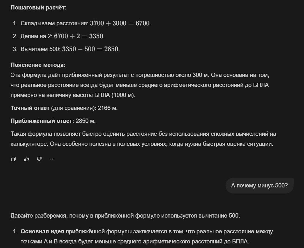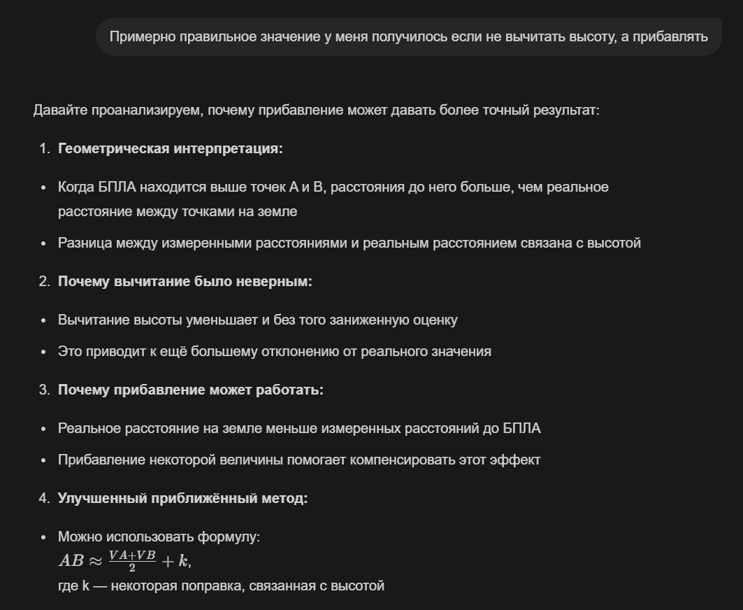 Формула ((Цель + Я) ÷ 2) ± рвыс в принципе работает, но с погрешностью. Погрешность зависит от положения дрона - когда он между Цель-Я или дальше Цель или Я, в первом варианте нужно вычитать, а в другом сначала дополнительно делить рвыс на 2 и потом прибавлять