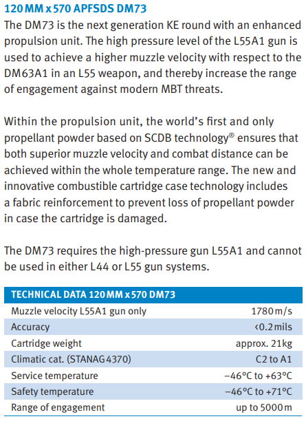 “As the projectile remains the same, we offer to our customers who have in stock numbers of DM63 rounds to upgrade those to the new standard, keeping the flight projectile, penetrator and sabot, and replacing the propulsion components,” Henselmann says.
