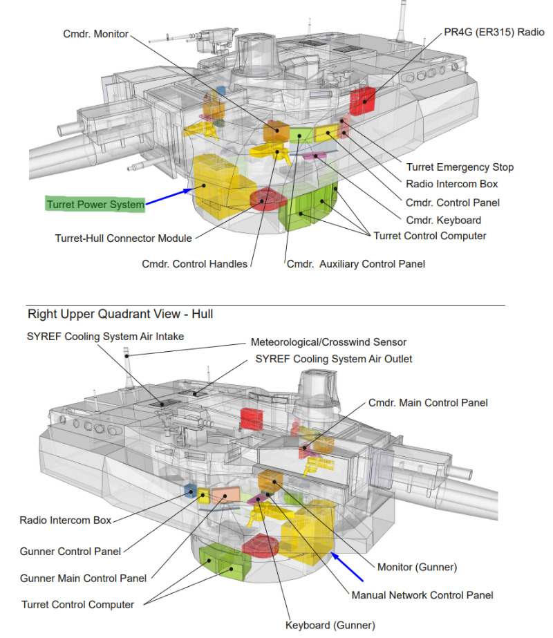 Вот как минимум силовая электроника, которая у леопарда в отдельном отсеке. А у Леклерка… посреди башни.