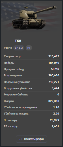 Типа Т58 может что угодно забрать своим хэшем (единственный играбельный хэш в игре), а АМХ-50, который на своём БРе и ниже вообще не играет, вечно с засосом берёт Дшный снаряд от 55-ок и их китайских копий со стабом.