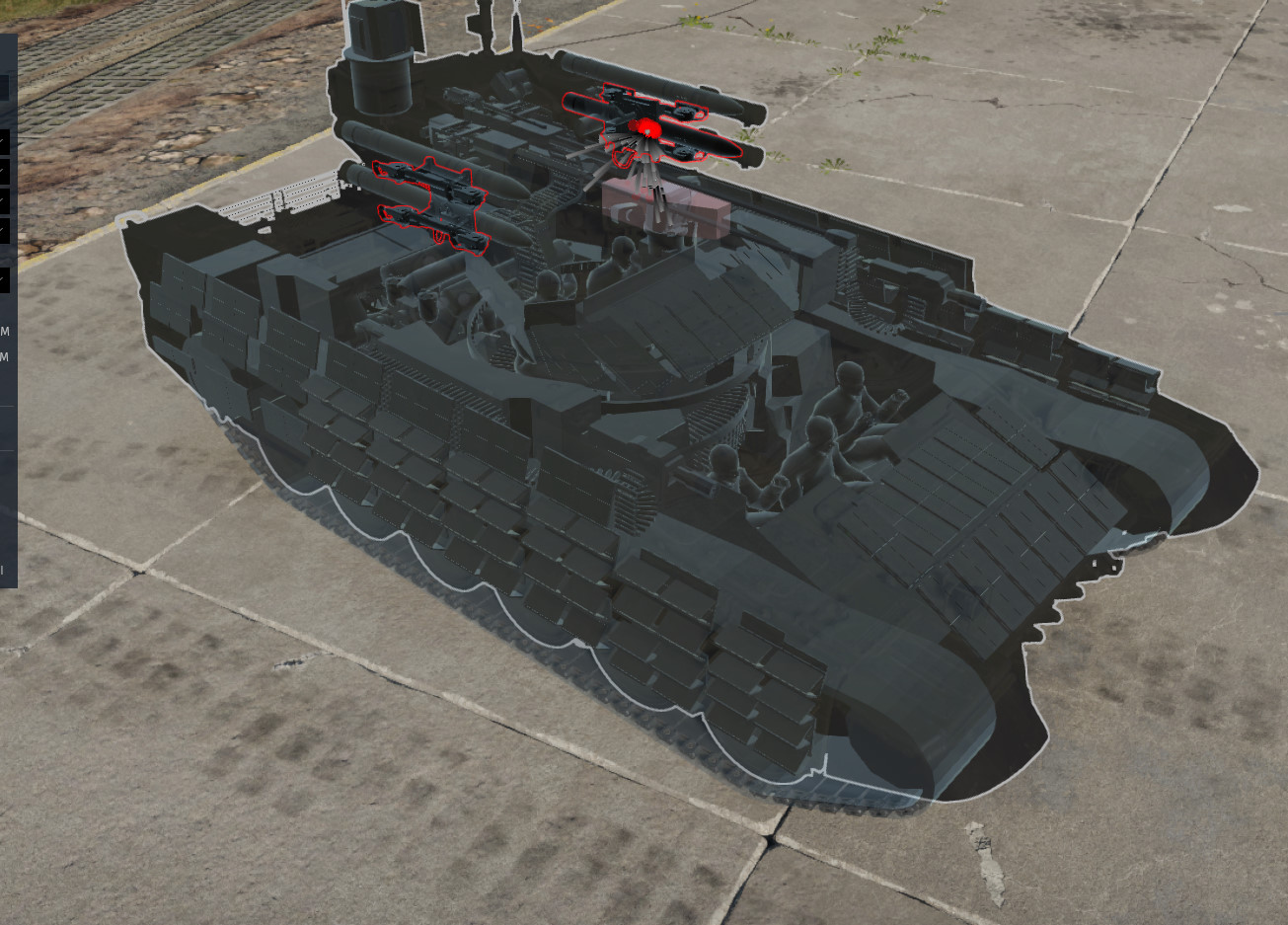у бмпт общий привод для всех птуров, а у панциря отдельный привод на каждый ряд ракет и на пушки
