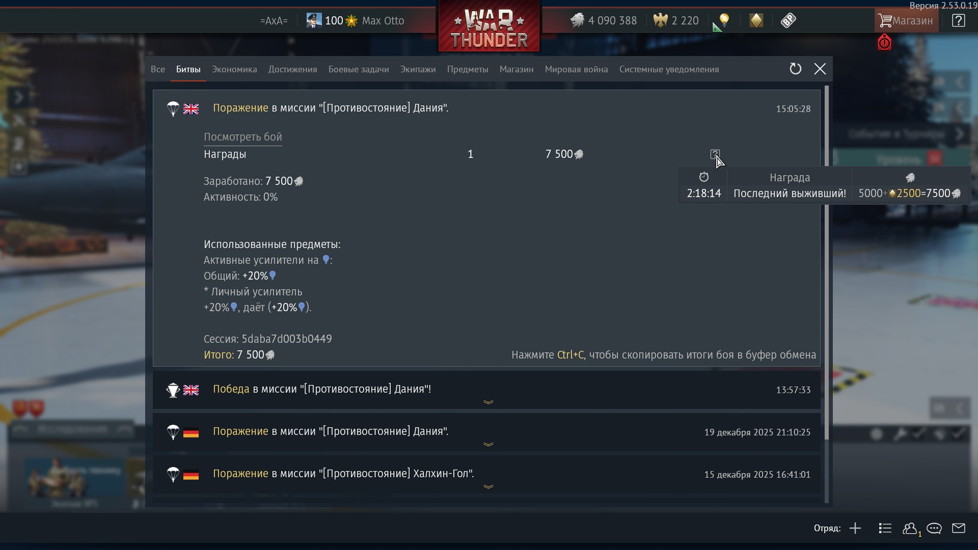Кто то предположит, что это баг и награда выдана за предыдущий бой. Нет, это не так. В предыдущем бою я не был последним выжившим, нас было двое.