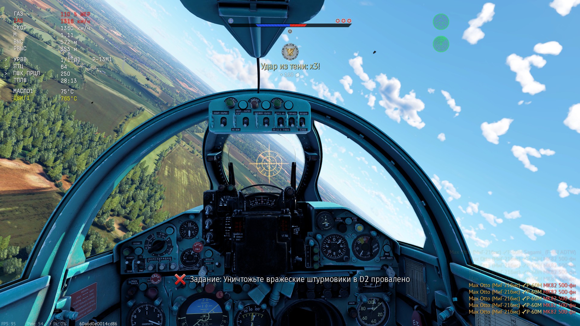 Еще первый раз сегодня увидел — прикольно, мне понравилось. Сбил фантом в момент сброса бомб, список уничтоженных боеприпасов на весь экран выпал, успел только «конец» )) заскриншотить. Ну, приятная такая визуализация. Правда за это ничего не дают, просто записано - уничтожено боеприпасов 1