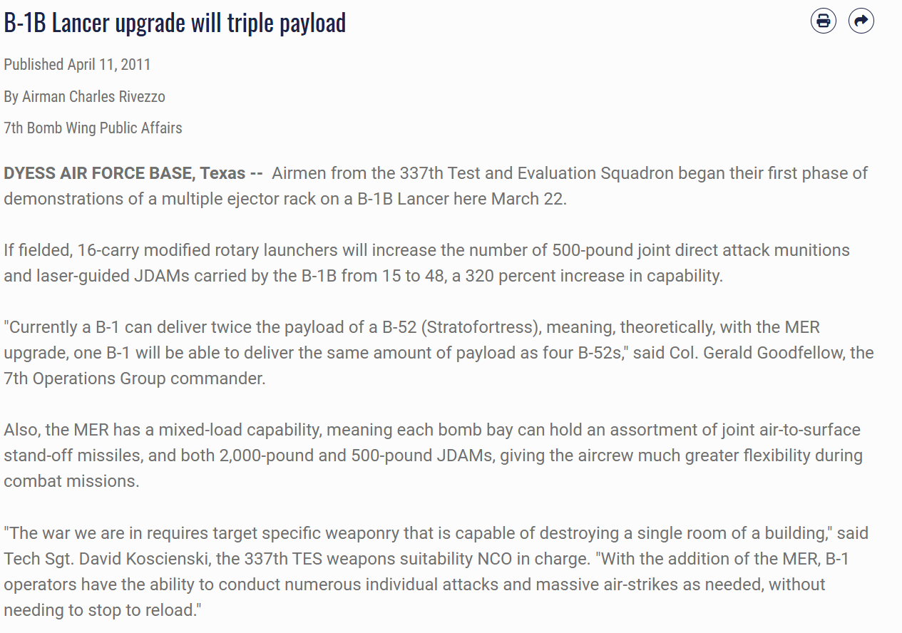 ну по поводу увеличения я не видел пока читал статьи , нуу точнее если не считать внешних пилонов и ещё наткнулся на то что в 24году был замечен с GBU-72 на внешнем пилоне но толком нормальной сто проц инфы о кол-ве фиг найдёшь