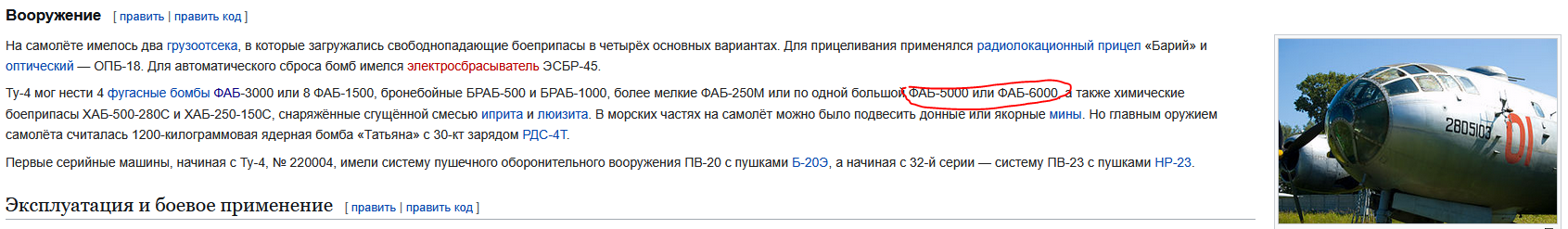 также, на сайте Wikipedia написано, что у ту 4 также был фаб 5000 и 6000 на вооружении.