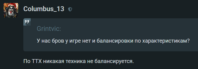 В том, что никакие ТТХ техники не “крутят” ради баланса.