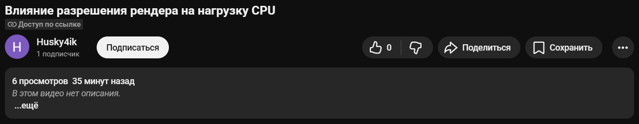 Предоставляю видеозапись, которая точно не доказывает что в условиях домашнего ПК изменение разрешения рендера игры влияет на нагрузку CPU
