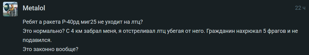 будь у него какой-нибудь швед 13.0 или f16c, тогда и мнение о ракетах относительно носителей резко поменяется