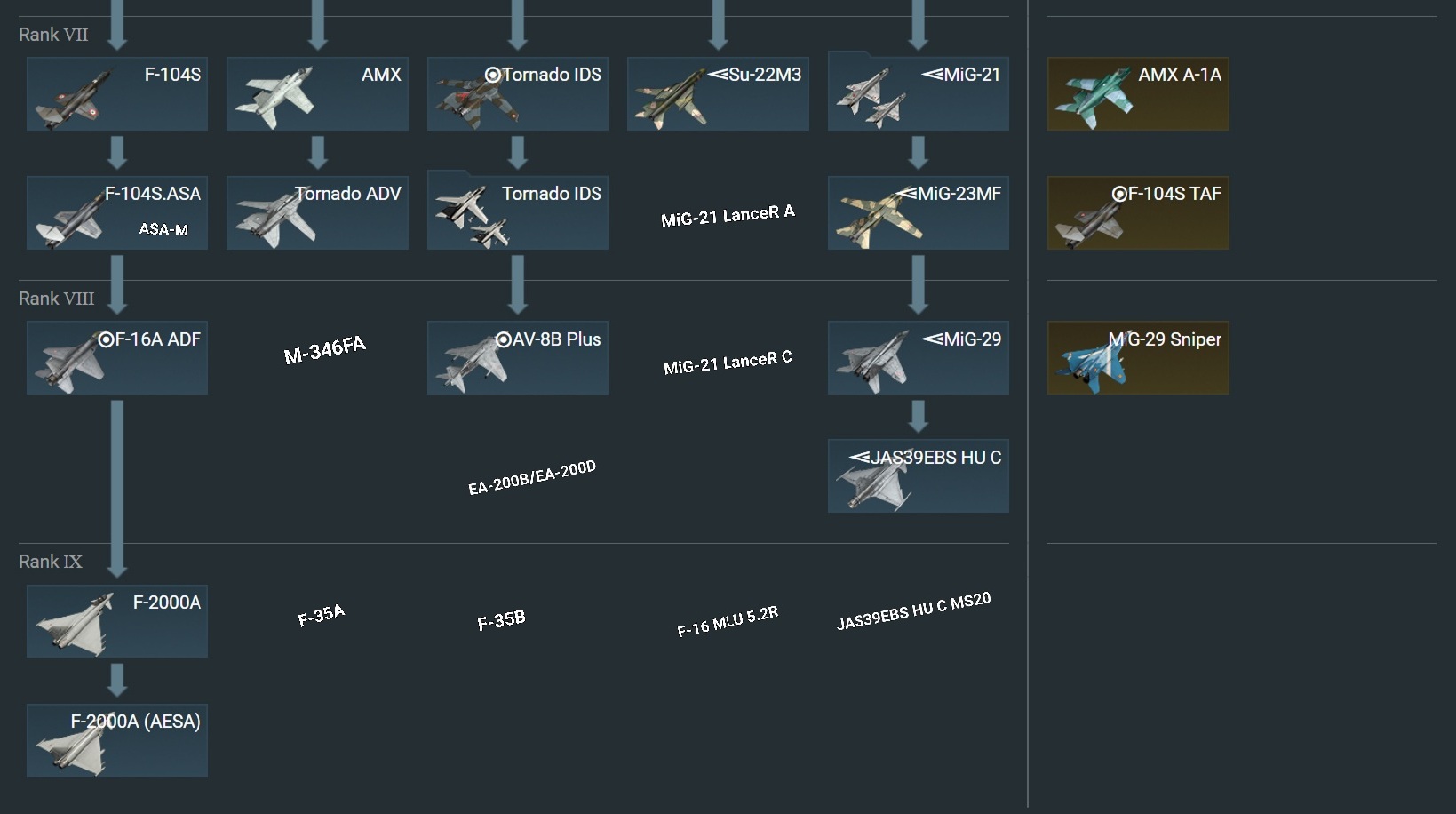 Предложение/ просьба: вернуть в прокачку обведённые красным самолёты.