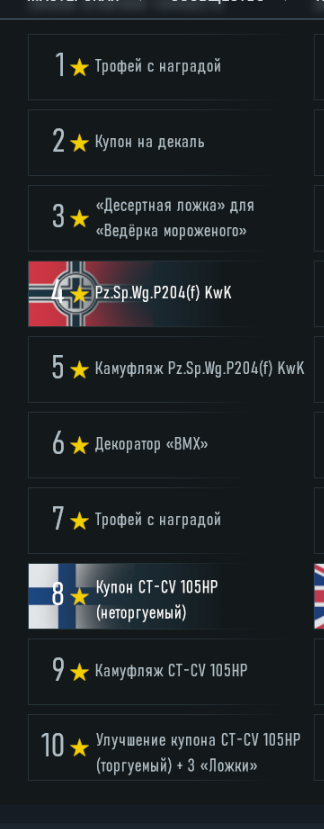 Ну вот например - помню, чтобы получить CTCV105 надо было набивать 40к очков раз в два дня. И на 10 медаль ты получал улучшение купона.