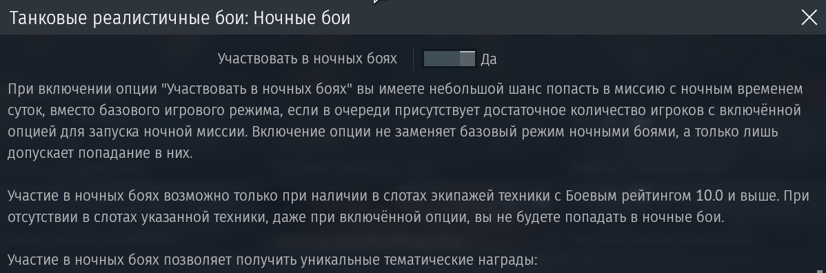 Здравствуйте, подскажите пожалуйста, как можно попасть на ночные бои? Я сейчас нахожусь на 6,7 БР, и хочу посмотреть что за ночные бои.