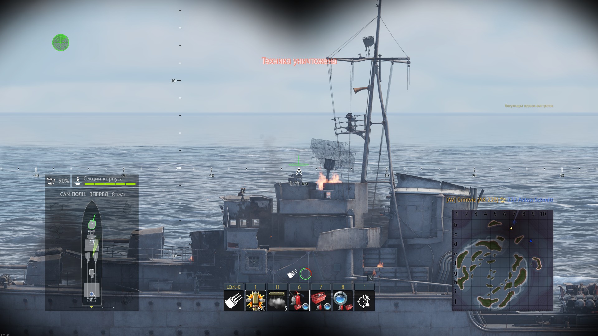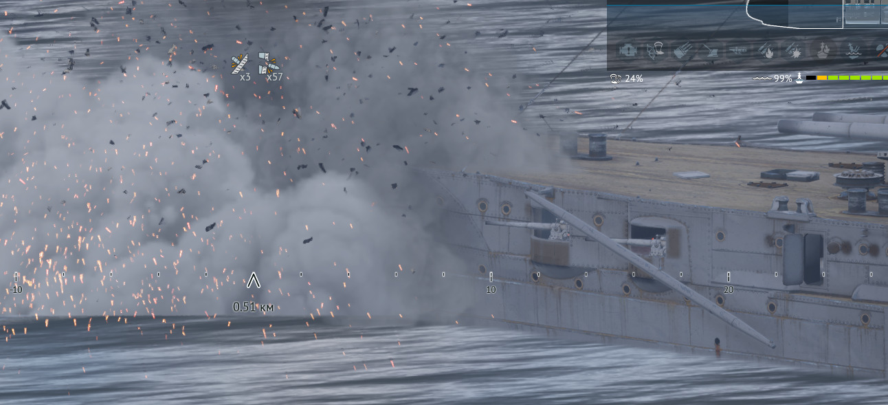 Но даже так ему оторвало полхлебало и закритовало всё и полностью, НО!!! НО эта падла жмёт ремку и вуаля, ни одного крита и веер торпед мне в борт)))