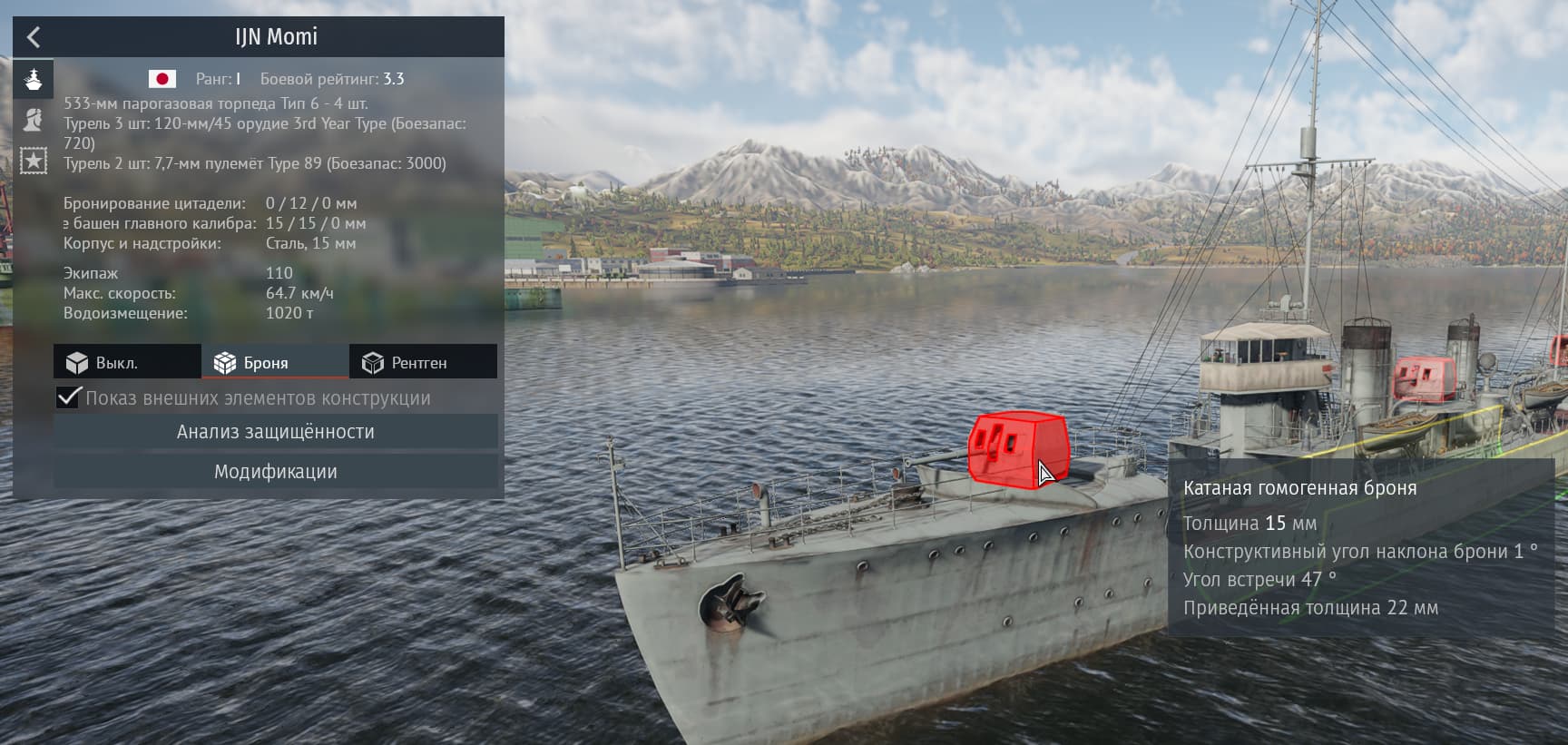 ладно что брони нет у башен. Кроме обшивки внутри эсминца вообще ни одной палубы или перегородки. Двигатель вообще постоянно и с гарантией ловит пердечные приступы при любом пробитии.