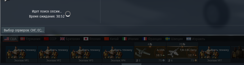 Вчера за США практически мгновенно закидывало в бой. Играл с 17:00 МСК, примерно, на евро серверах. А ну и в сетап поставил самолёт 10.7, что бы выше 12.0 не попадать.
