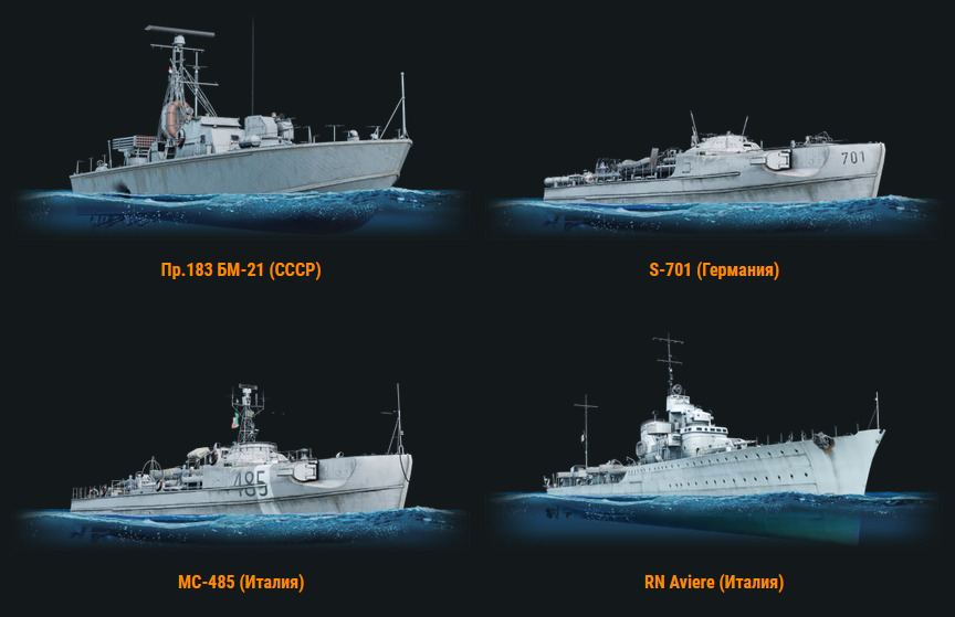 - вариант: USS Flagstaff, HMS Gay Archer, один из танков прошлых БП, M.B.151C.1/ Late 298D/ NC.900.