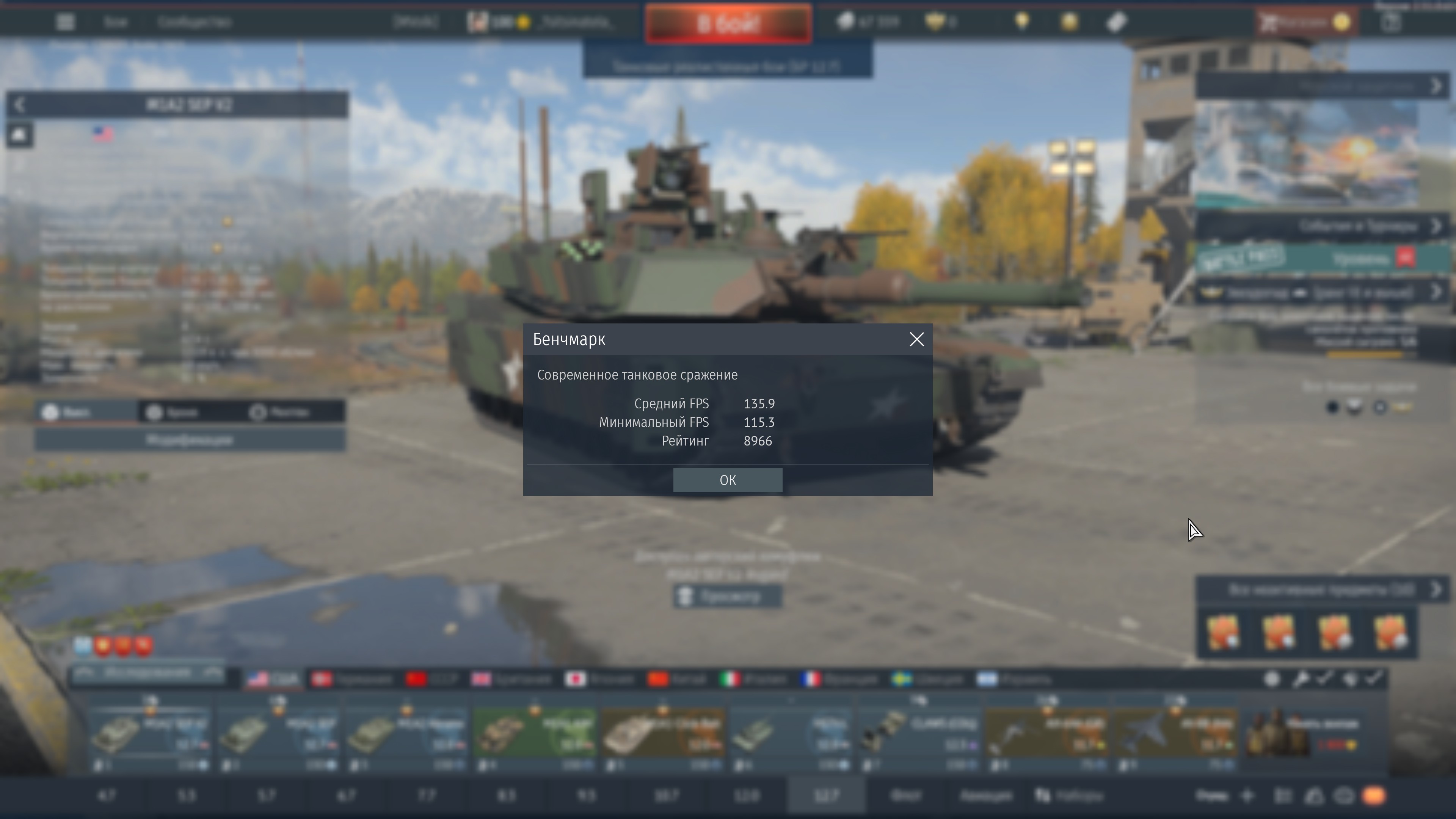 Скриншот второго теста производился в бои/бенчмарк/современное танковое сражение. С аналогичными настройками как и выше.
