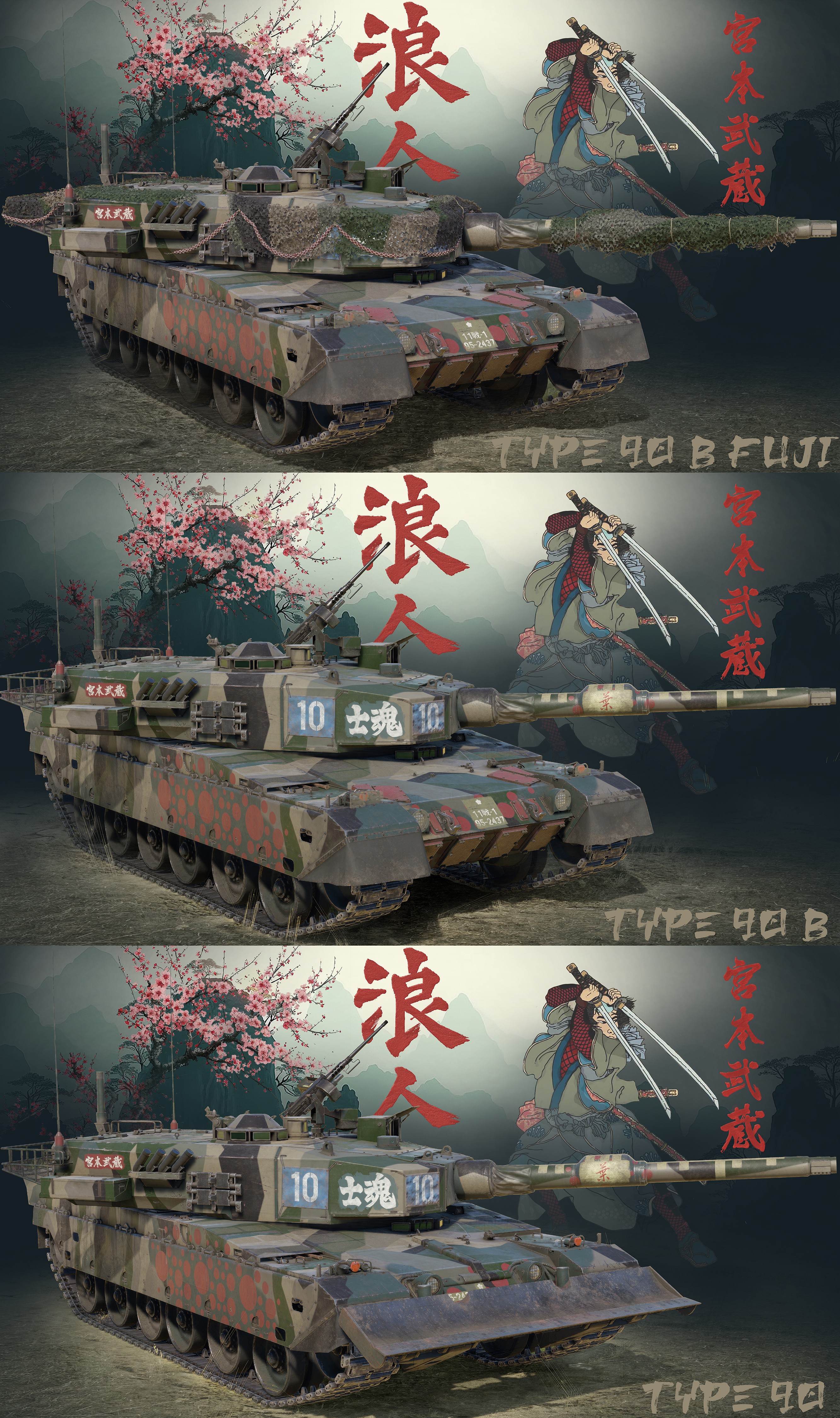 Внимание !!! – камуфляж адаптирован ко всей линейке танков Type 90 (Type 90 (B) «Fuji», Type 90 (B), Type 90)